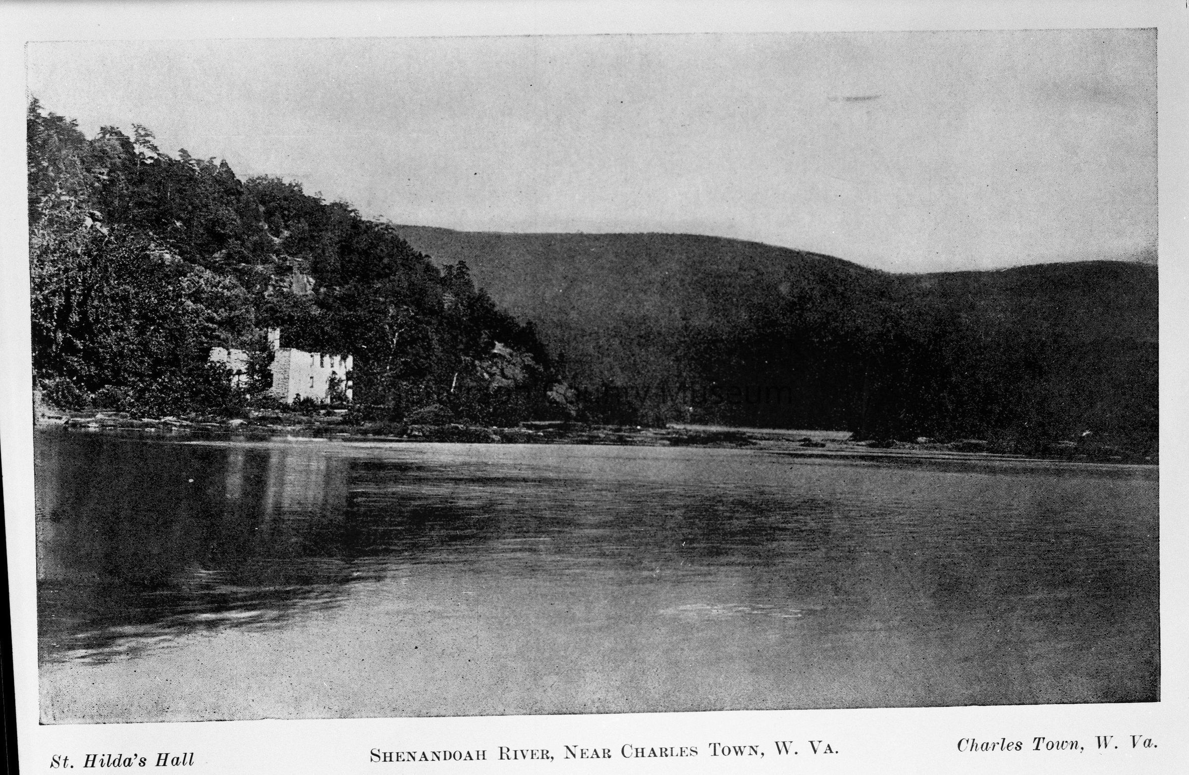 " Old Mill or manufacturing building of some sort on Shenandoah River at the east end of what is known as the Big Eddy. One of a group of photos in an old St.Hilda's College catalog. "