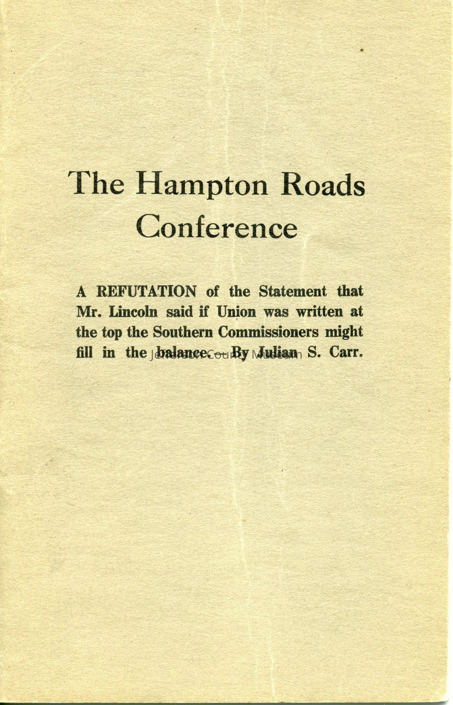 The True Story of the Hampton Roads Conference between Mr. Lincoln and Wm. H. Seward on one side and Alex. Stephens and other Confederate Commissioners on the other side.