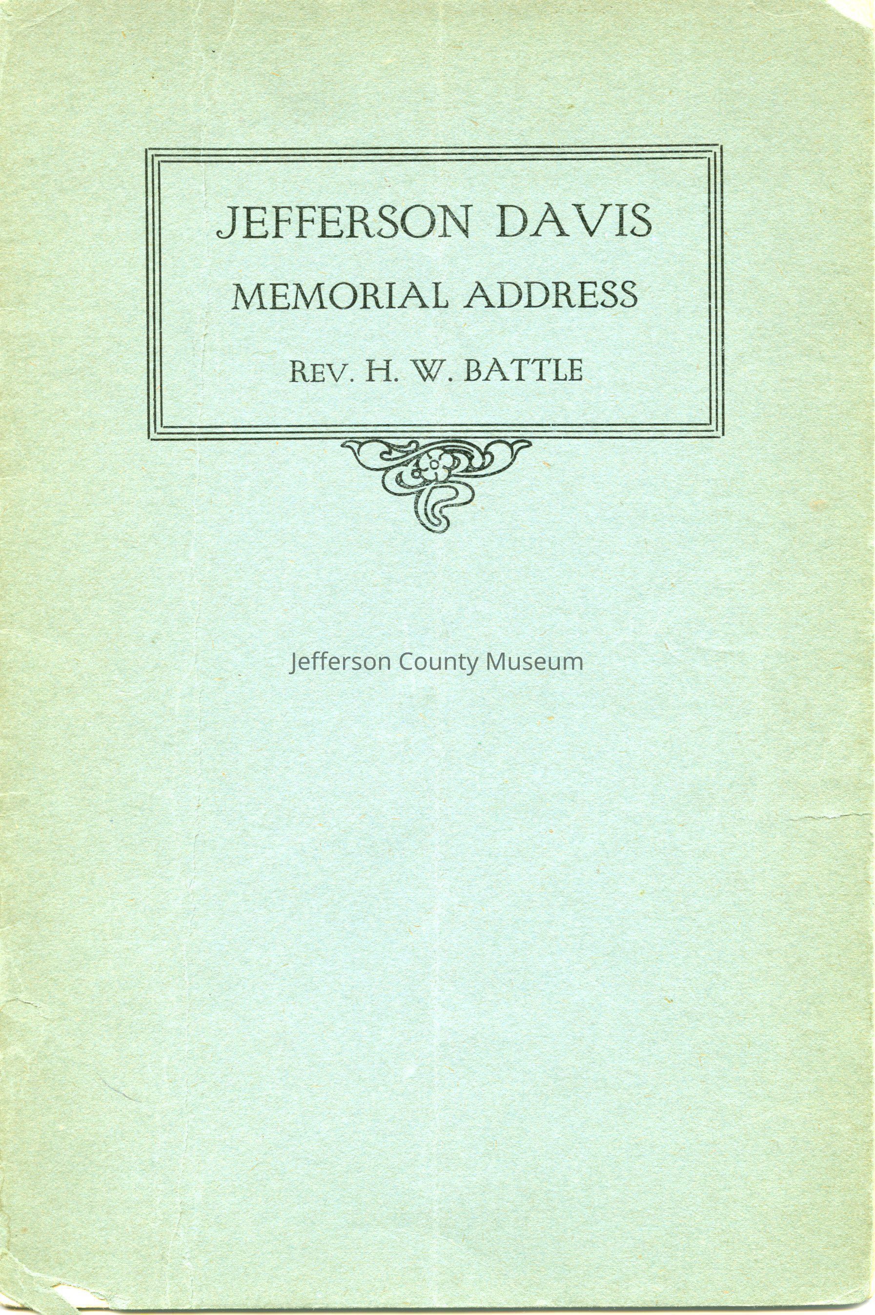 Jefferson Davis and His Times by Henry W. Battle, D. D. - A speech given before the Augusta Memorial Association for the Confederate Dead in Staunton, VA on Memorial Day, 1917. In this address, Mr. Battle spoke of Jefferson Davis and how important he was for the South. He laments the view that many people have of the role that Davis played in the Civil War, and hopes that some day history will prove that Davis was a hero of the war and not a villain.Acquisition
