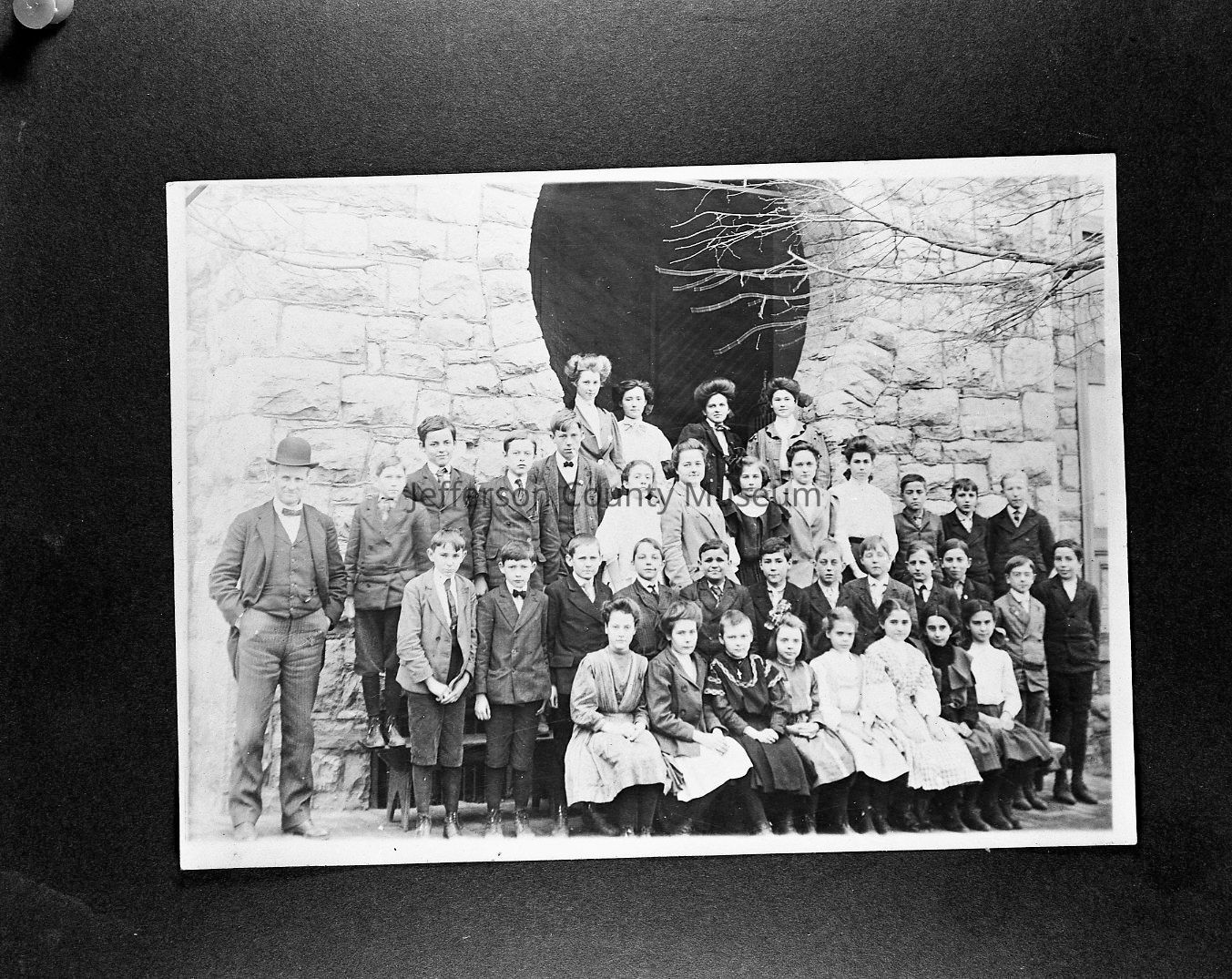 School class in front of the original Charles Town High School, Mr. Denny at left. Named Charles Town Graded and High School in 1905.
