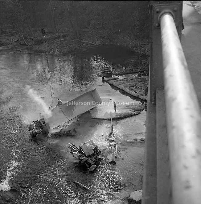 According to commenters on a facebook post 11/12/25, the truck was from OMP's trucking in Winchester, carrying limestone which is still in the river. The first crane that came to lift the truck was not large enough so another crane had to be brought back a day later.