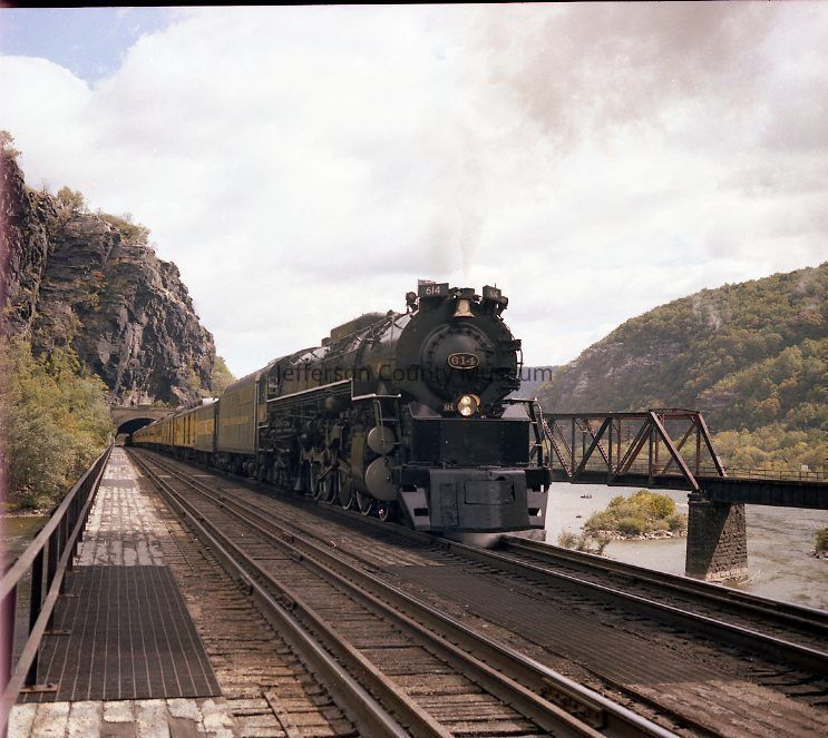 B & O Railroad Bridge over the Potomac River at Harpers Ferry. Locomotive on bridge [note by photographer: photos for H. F. bookstore to sell]