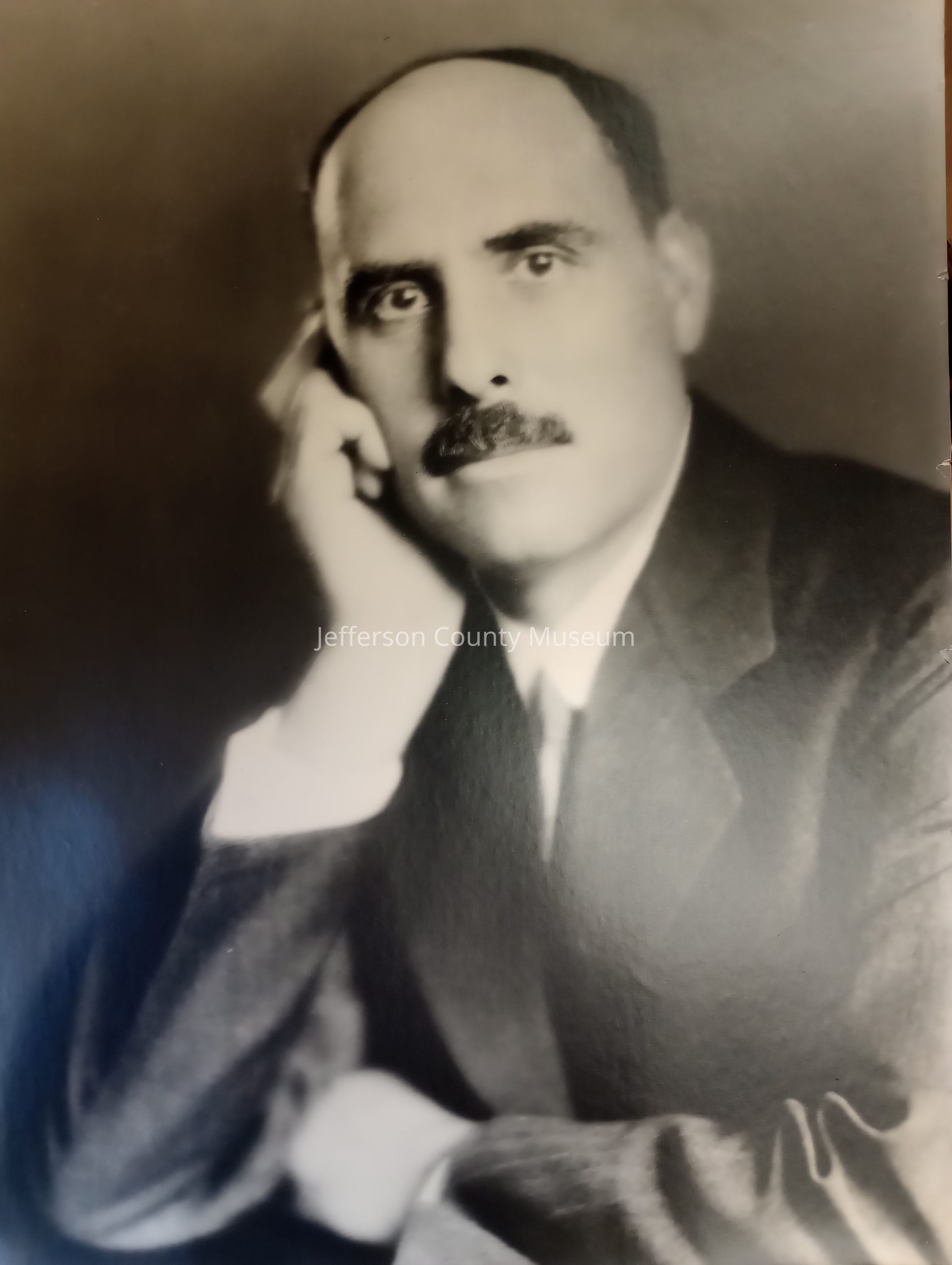 Black and white portrait of Hyman Viener mounted on cardboard. Sitter is facing the camera with one arm crossed and one on his chin.