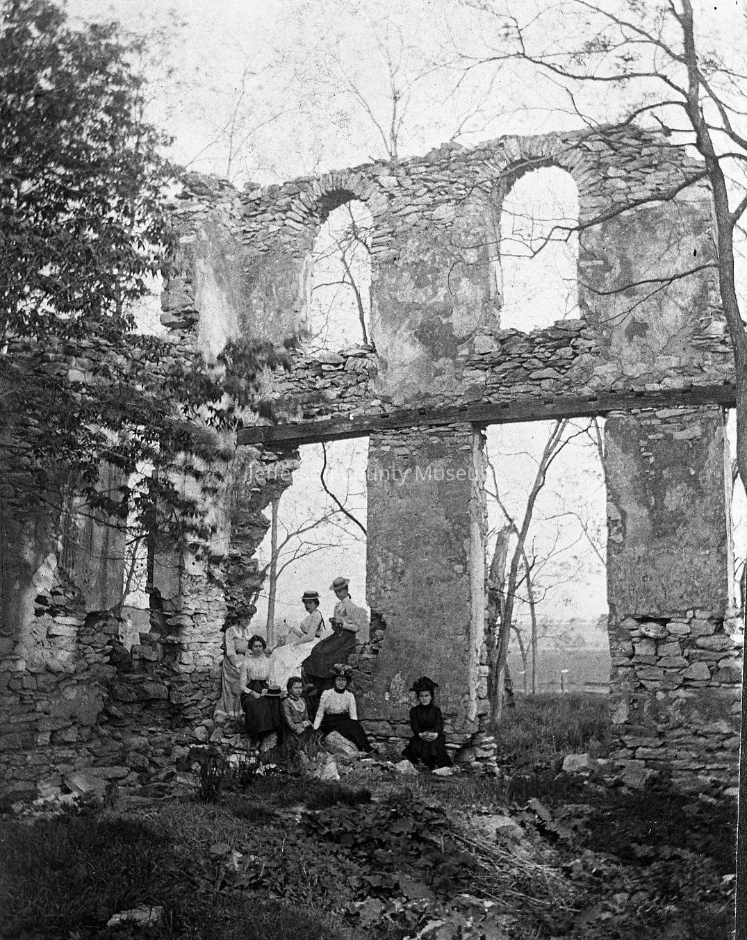 Old Stone Church or St. George's Chapel ruins (date unknown). Inscription on back reads " The Old Stone Church near Charlestown, Seminary Girls "