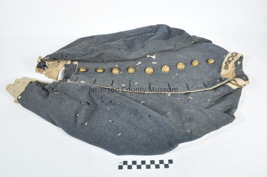 Confederate shell jacket marked "William Darke Briscoe CSA Second Virginia Infantry, Stonewall's Brigade" inside jacket on back in brown ink. Nine brass buttons with state seal of Virginia.Acquisition