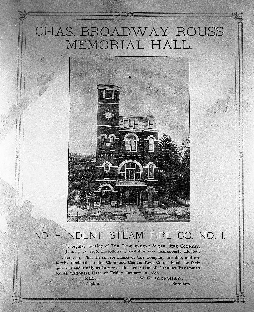Independent Fire Hall Resolution of Thanks, January 10, 1896. The fire hall was located on North George Street next to Charles Washington Hall.