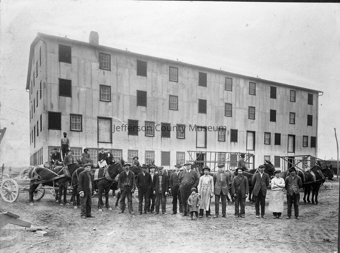 Jefferson Cooperage Company building, 1903. The plant was located in Ranson bounded by 10th and 12th Avenues and the N & W Railroad and Border Street. E. E. Furr managed the shop.