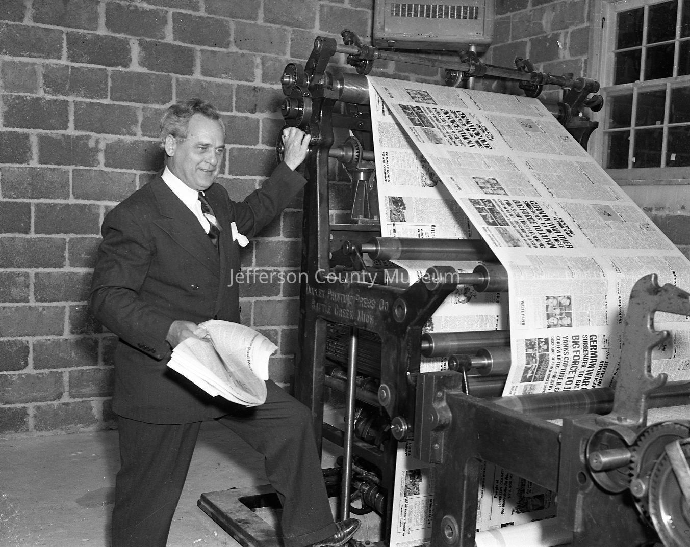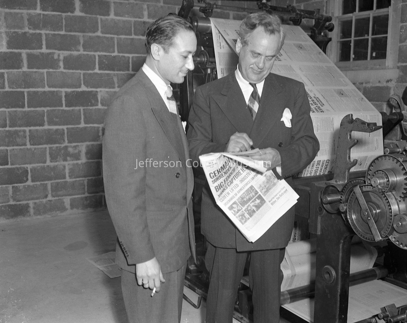 Jefferson Republican Press premiere and first edition published in new building on new press, May 1945