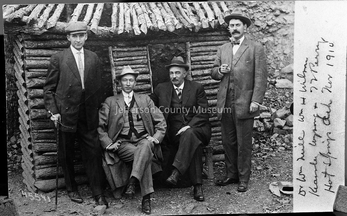 Bill Wilson copy negative of left to right: Dr. Wm Neal; Wm. H. Wilson, postmaster general; Kearsley Wysong; T. T. Perry, Hot Springs Ark., November 1910