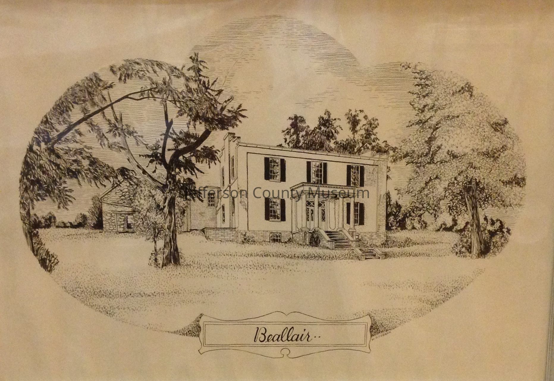 Black and white reproduction of drawing of Beallair by W. D. Eubank