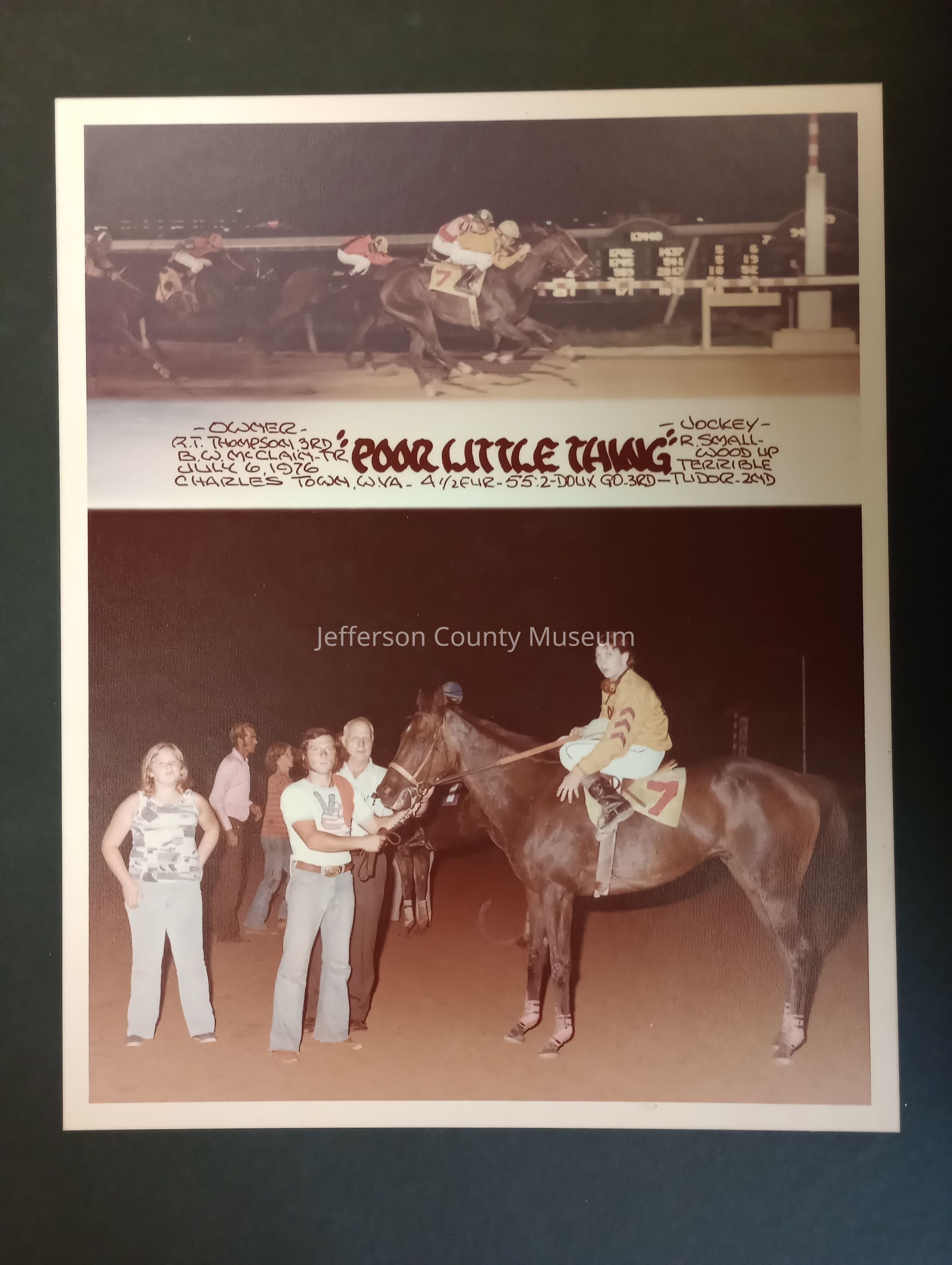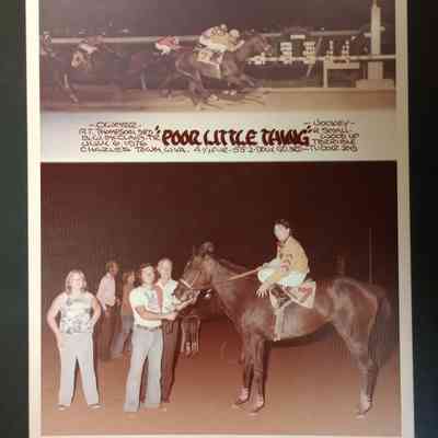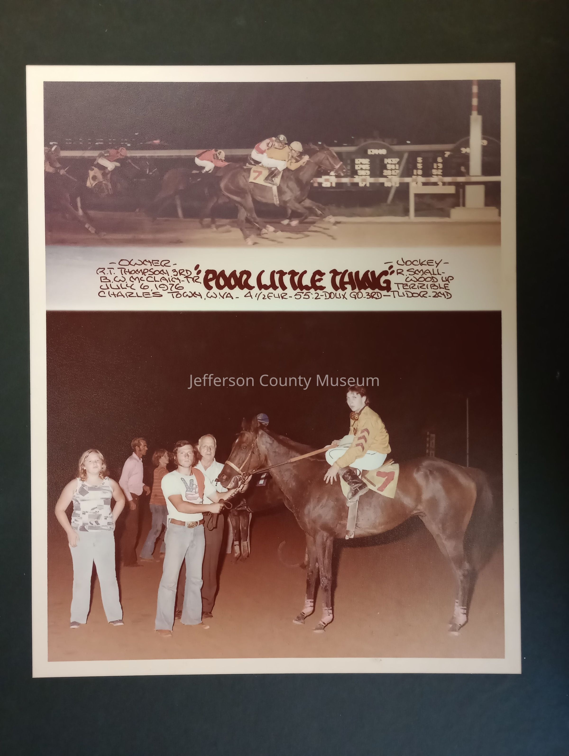 Mounted color winners circle photo for "Poor Little Thing."Context