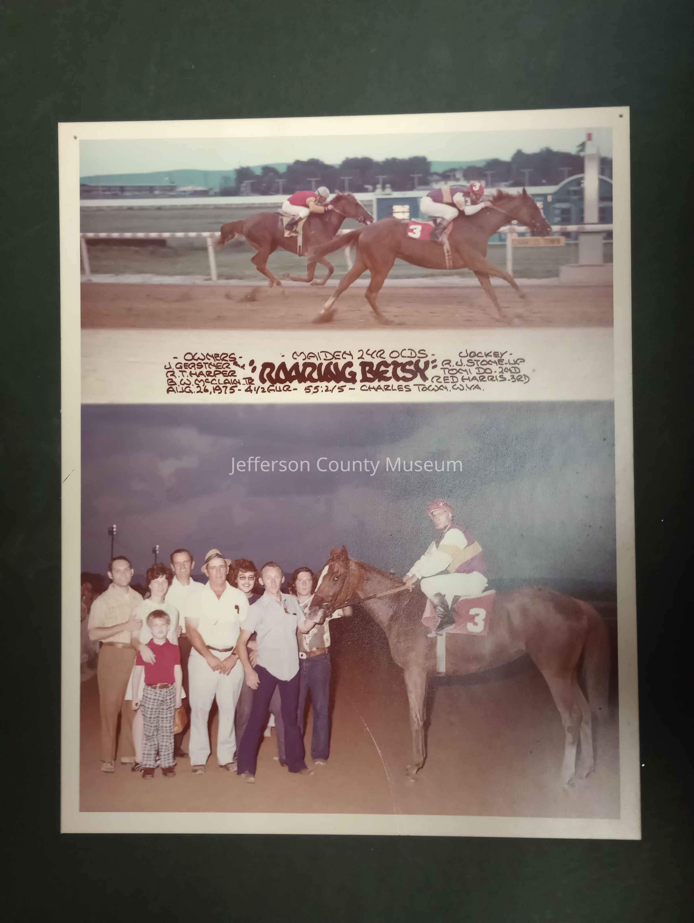 Mounted color winners circle photo for "Roaring Betsy."Context
