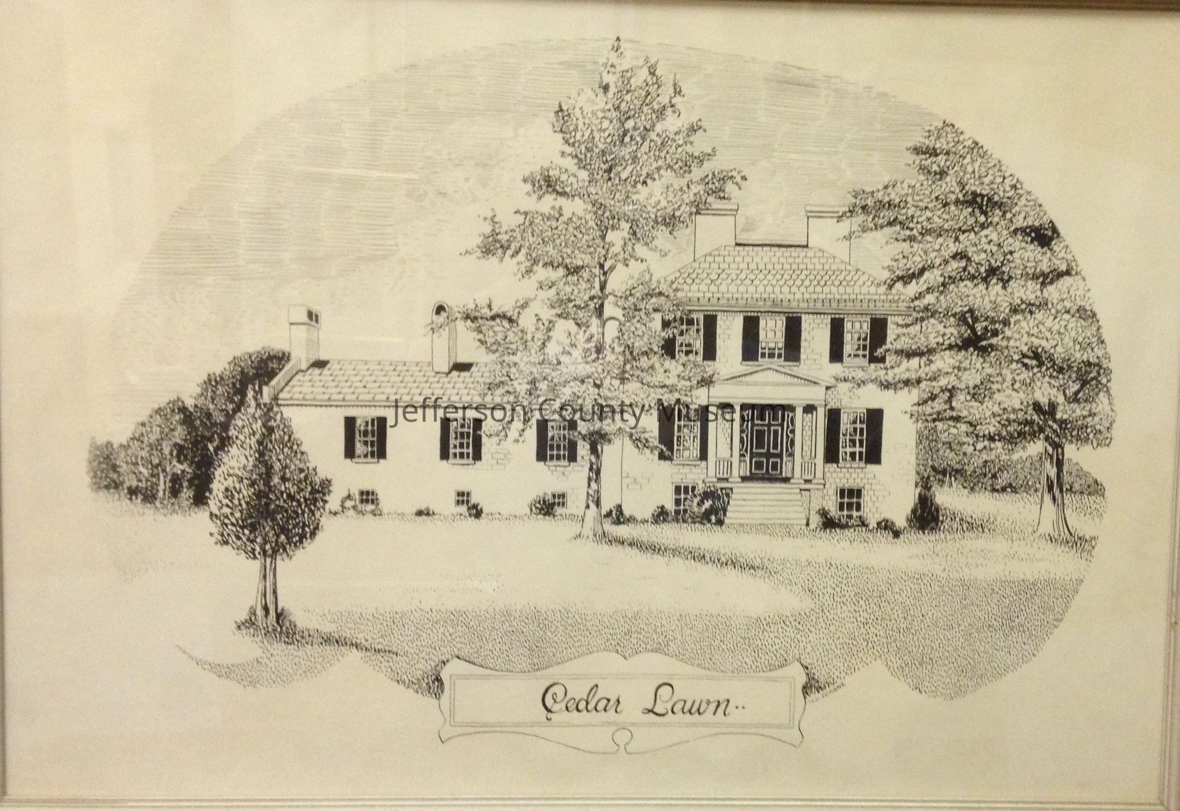 Black and white reproduction of a drawing of Cedar Lawn. Lower right corner reads " W. D Eubank "