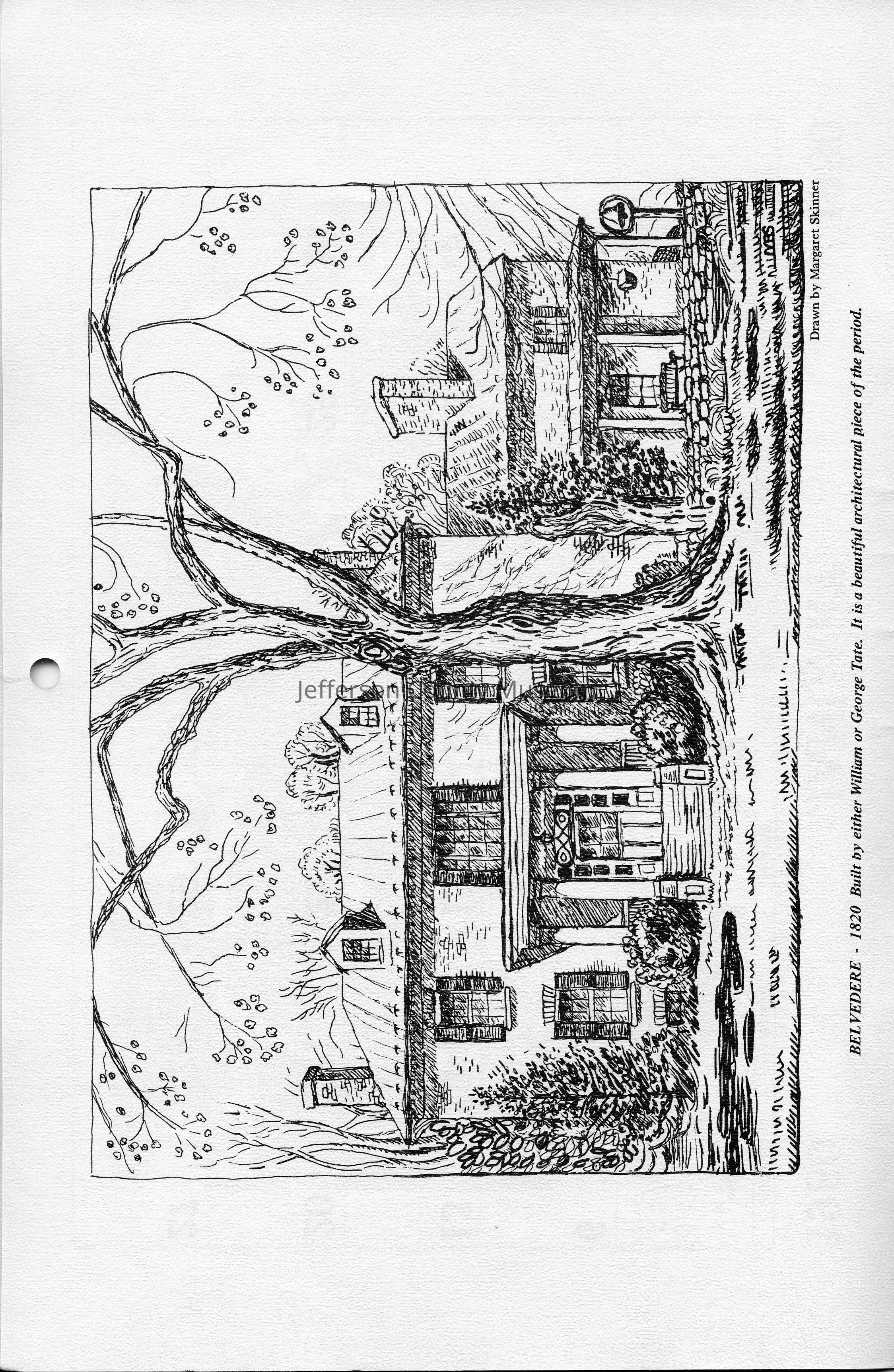 Belvedere - 1820 Built by either William or George Tate. It is a beautiful architectural piece of the period. Drawn by Margaret Skinner.