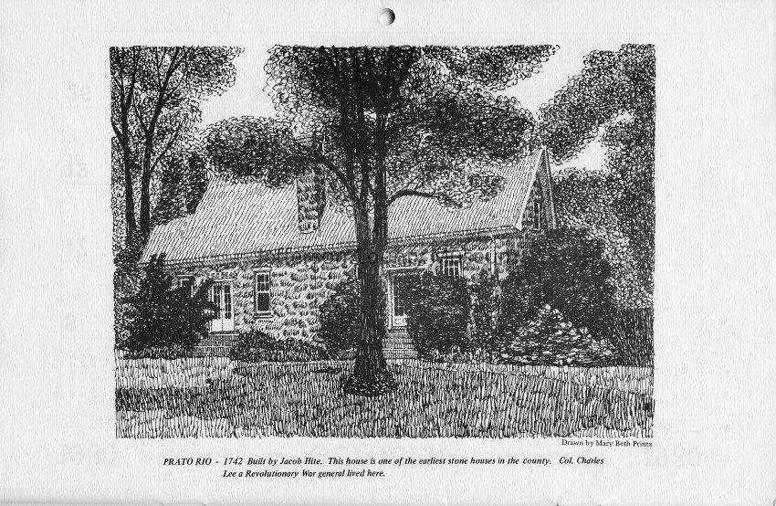 Prato Rio - 1742 This house is one of the earliest stone houses in the county. Col. Charles Lee a Revolutionary War general lived here. Drawn by Mary Beth Printz.