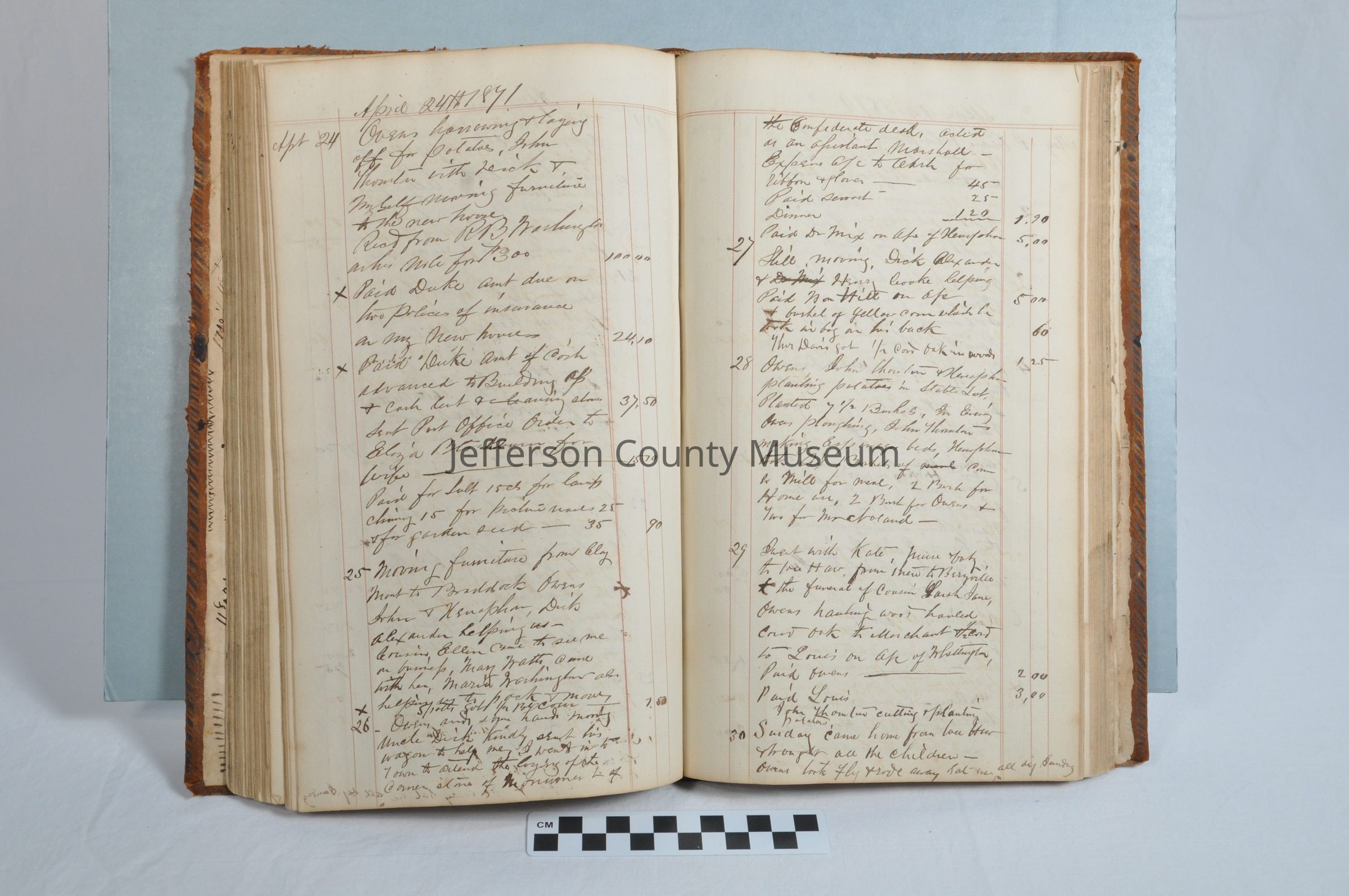 See Media for digital scans (PDF) of the ledger. To view, contact the Jefferson County Museum.Acquisition