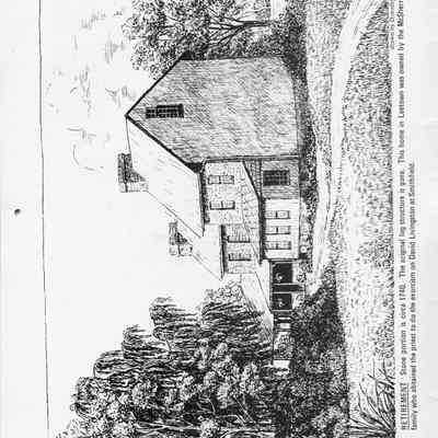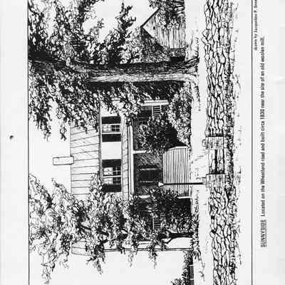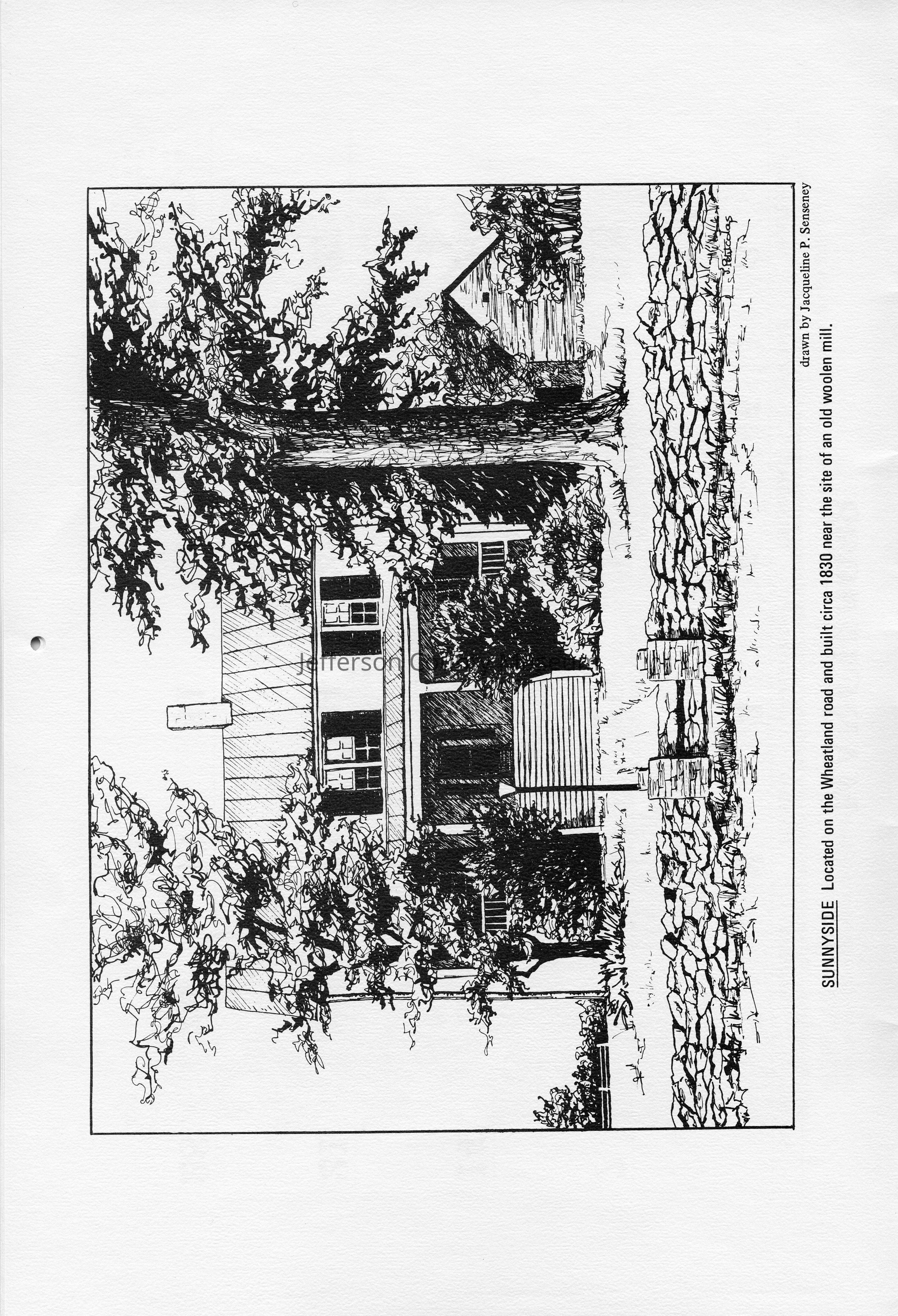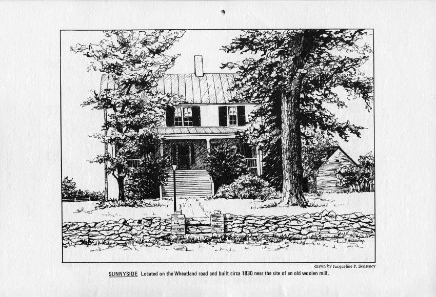 Sunnyside - Located on the Wheatland road and built circa 1830 near the site of an old woolen mill. Drawn by Jacqueline P. Senseney.