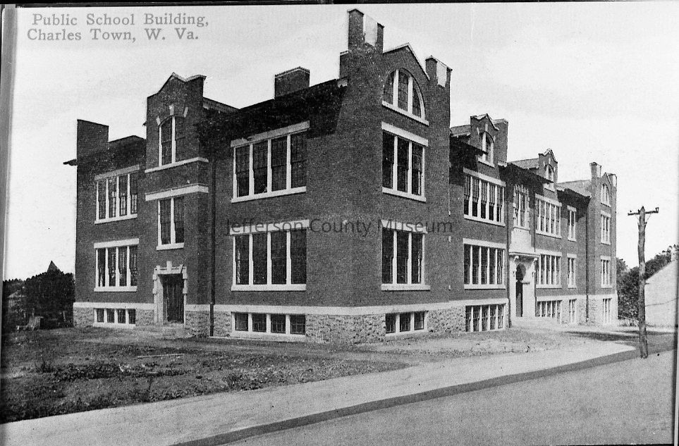 Charles Town High School (built 1930) on South Lawrence Street, later converted to Charles Town Jr High in 1958; named Wright Denny Intermediate School in 1972.
