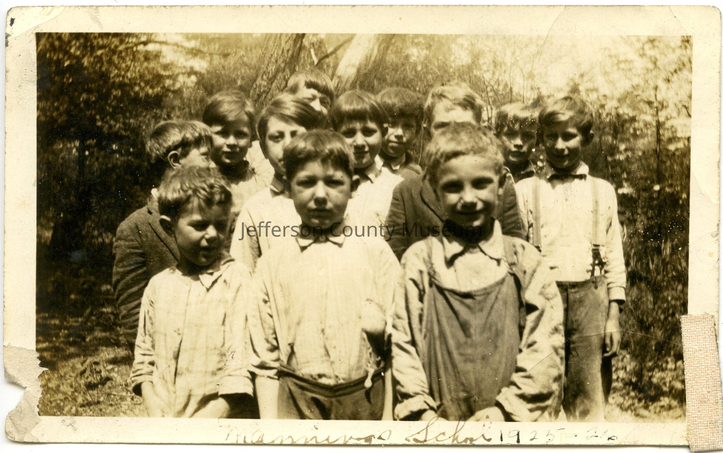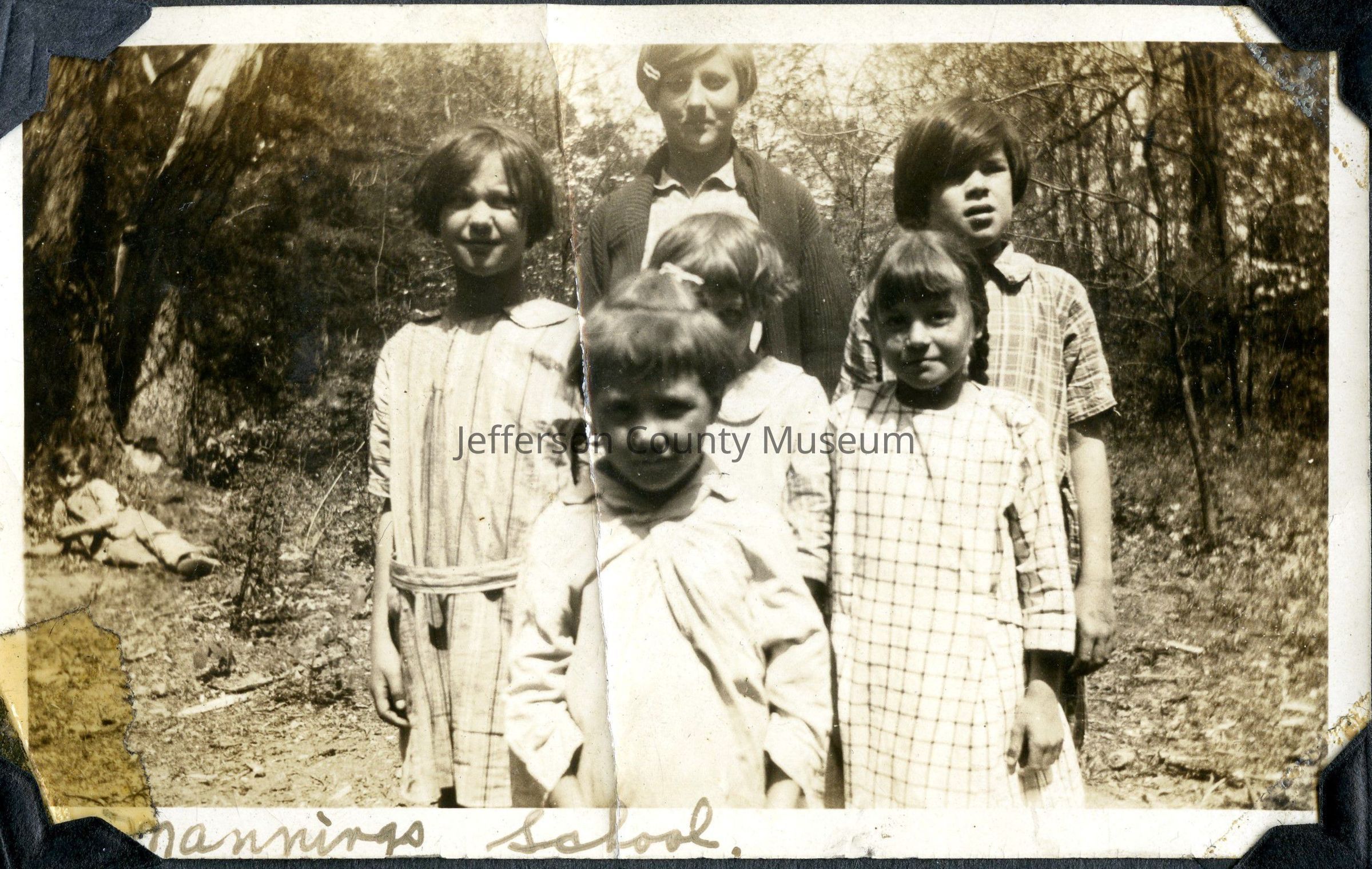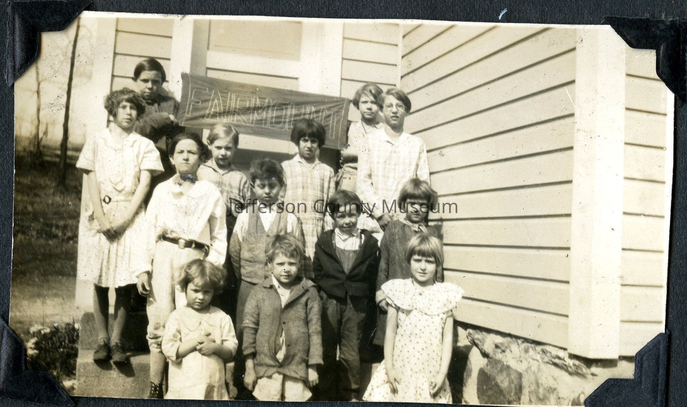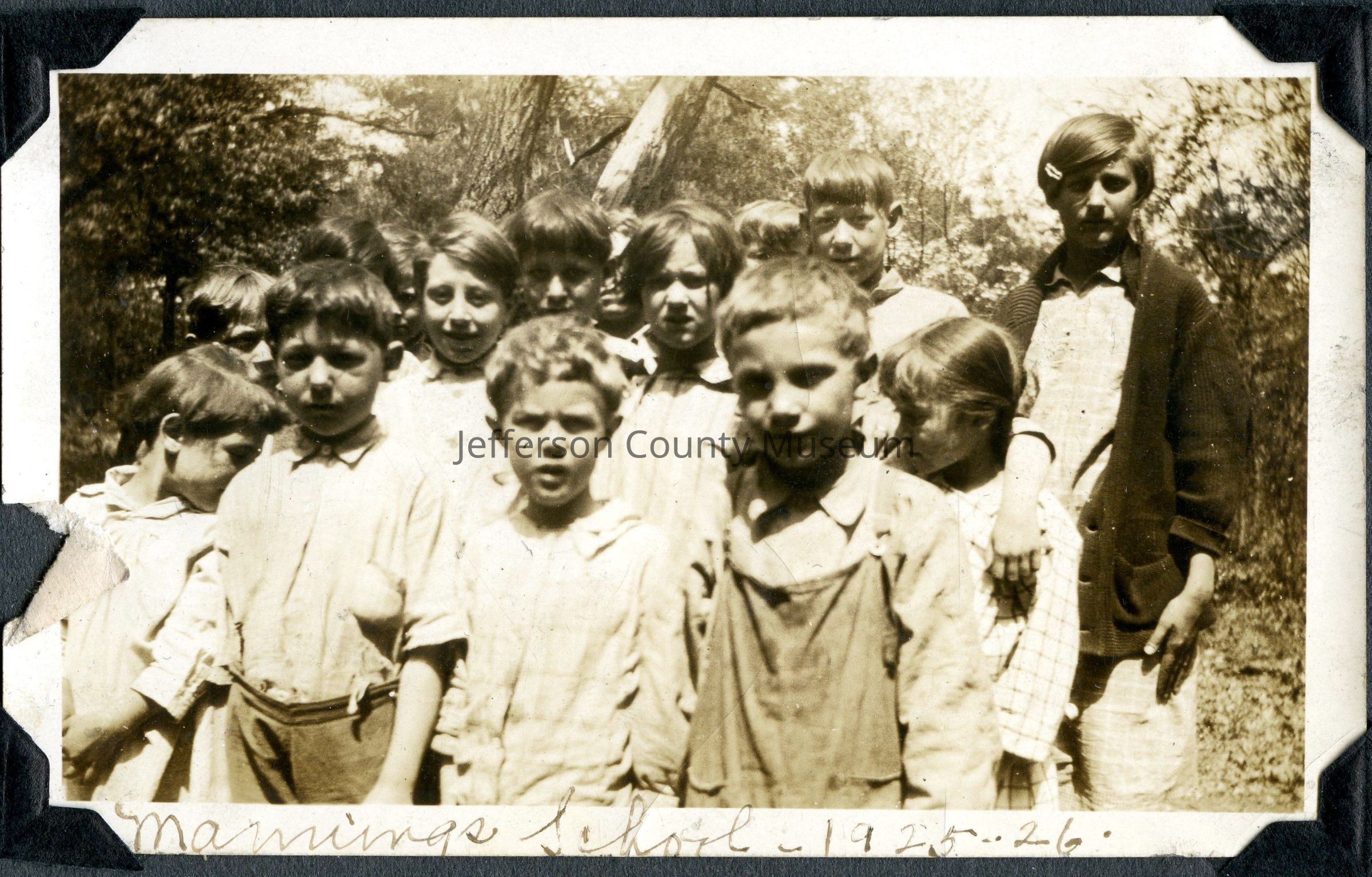 Thirty page black photo album with diamond design on cover and tied with black string of local children's school pictures collected by Marianna Johnson Smallwood, a local school teacher. Entitled "Fairmount School 1926-, Mannings School 1924-25, 1925-26." Both schools were on the Blue Ridge mountain, east of the Shenandoah.