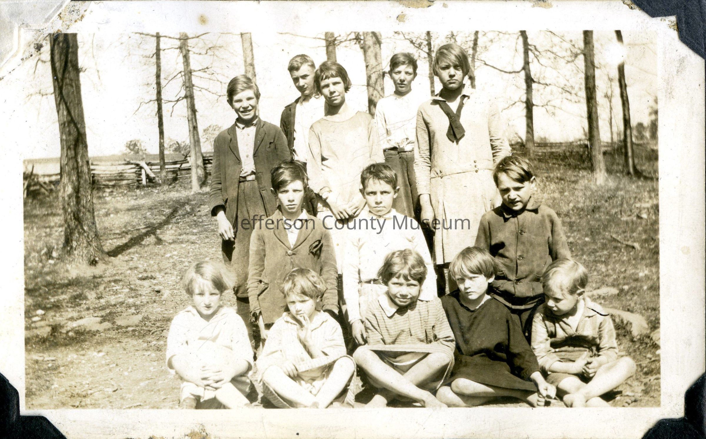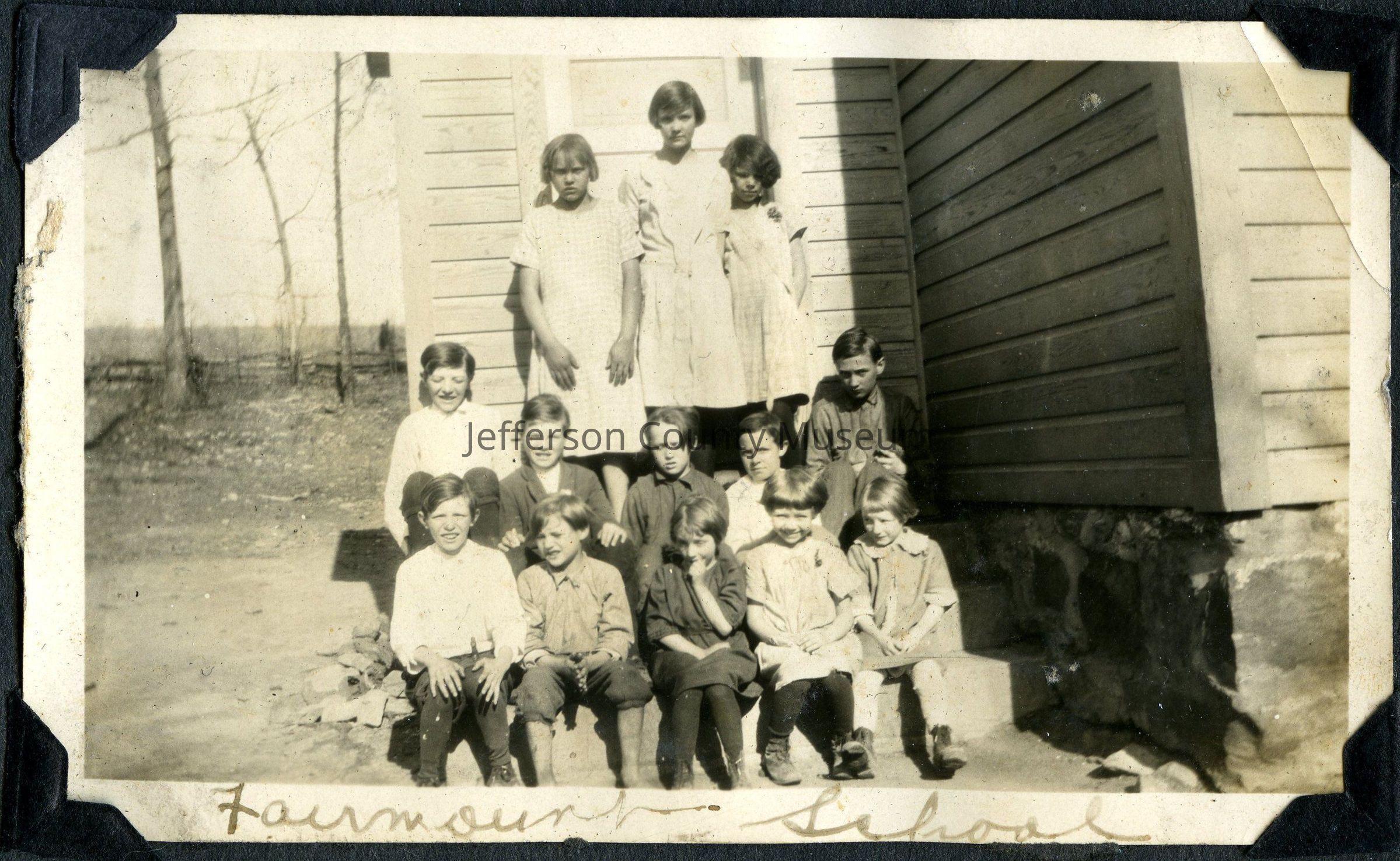 22. Fairmount School in 1932 with 22 children (1) unknown, 2) Louise Brown, 3) Louise Mobley, 4) David Armstrong, 5) Charles Armstrong, 6) George Armstrong, 7) George Sowers, 8) Lucy Gaynor, 9) Estelle Sowers, 10) Elzy Penwell, 11) Irma Gaynor, 12) unknown, 13) Dolly Armstrong, 14) Emily Armstrong, 15) Lester Dillow, 16) Mabel Brown, 17) Juanita Gaynor, 18) Beulah Mobley, 19) Arthur Summers (?), 20) Janie Sowers, 21) Charles Dillon, 22) Cora Armstrong)(names on back of photo scanned in Media as ARC648-52)