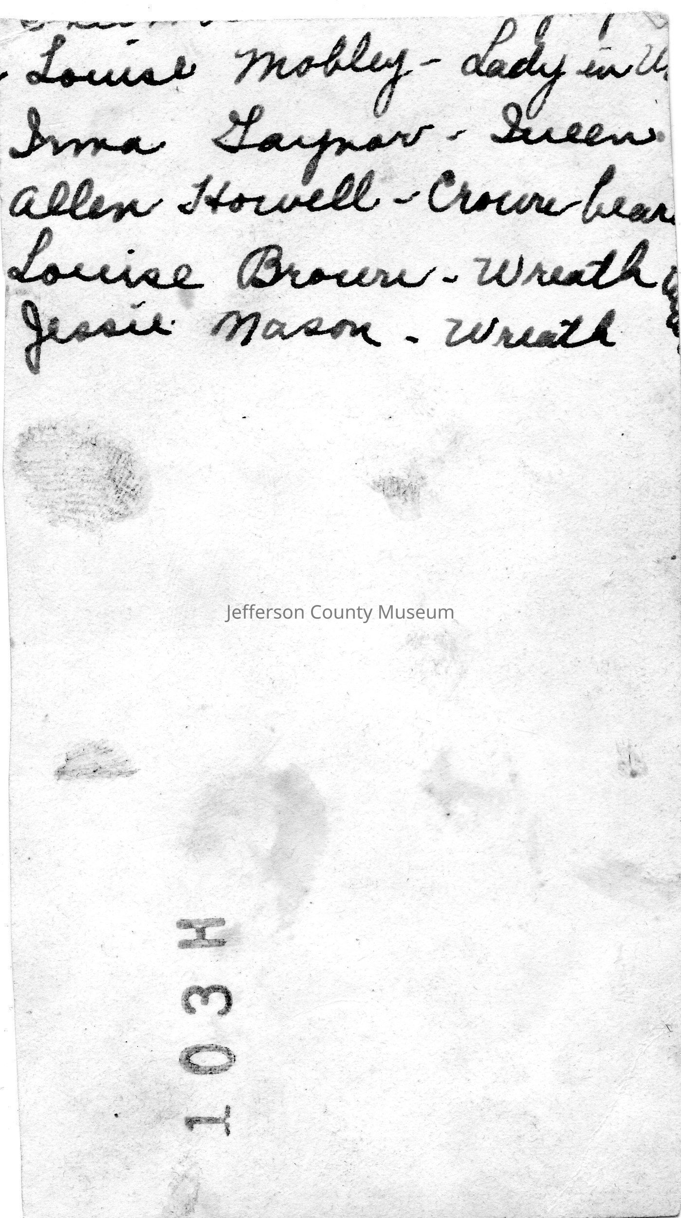 8. Woman with 5 children and May Day decorations in 1936 (Louise Mobley - lady in ?, Irma Gaynor - queen, Allen Horwell - crown bearer, Louise Brown - wreath, Jessie Mason - wreath)(names on back of photo scanned in Media as ARC648-51)