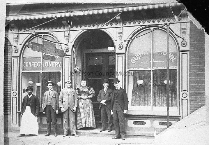 Brown's Confectionary. Owned by Gustav Brown - Confectionery, toys, novelties, ice cream parlor, oyster bar. Located at 124 West Washington Street.