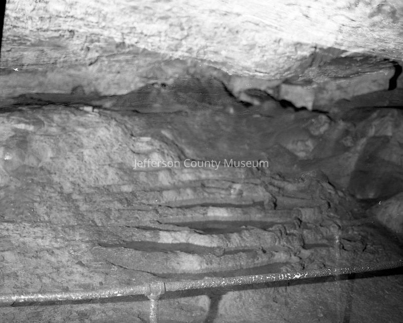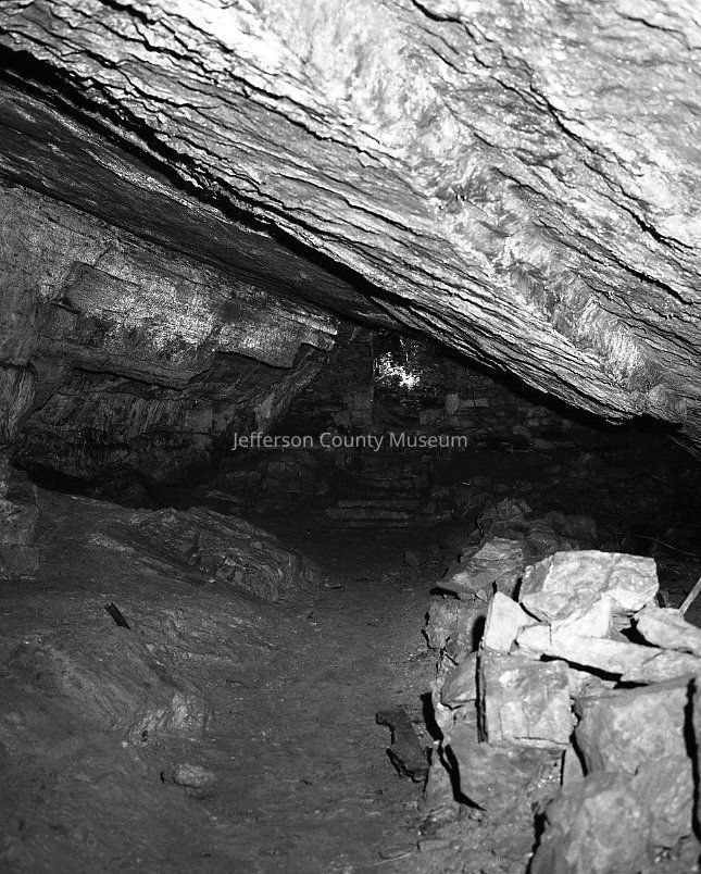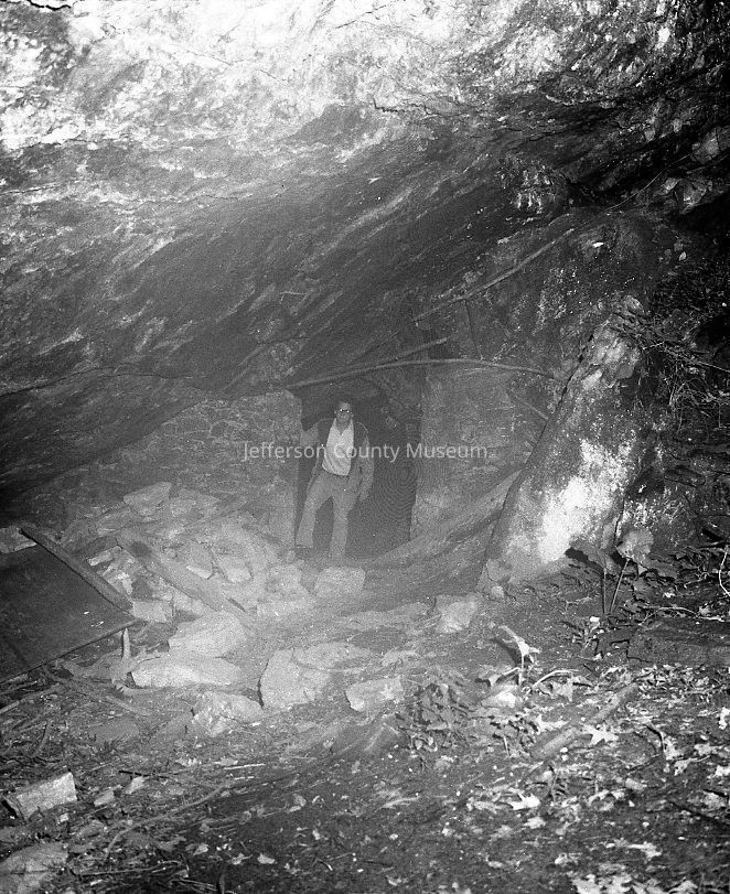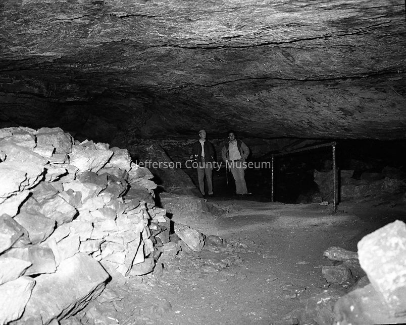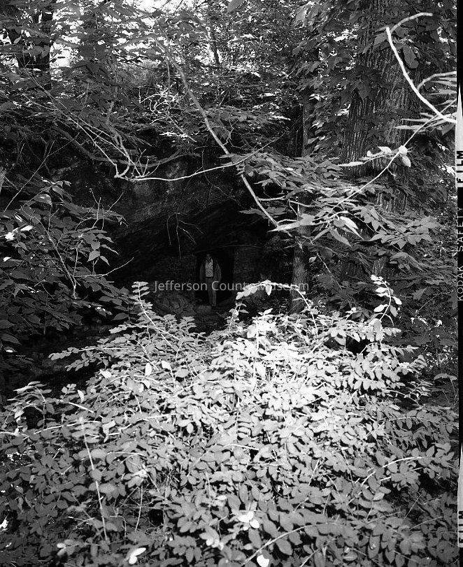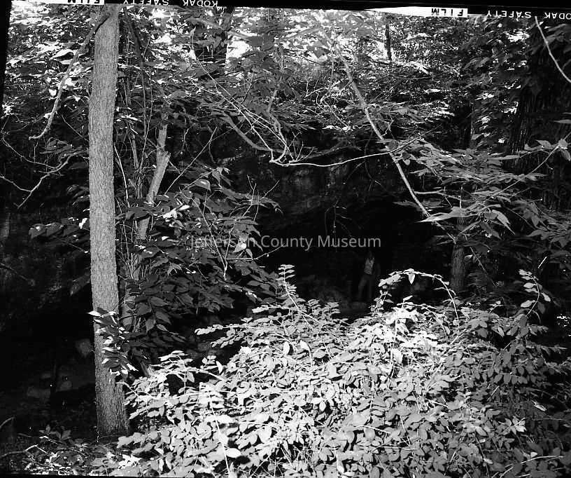Cave on Strider Farm known as Masonic Cave or Washington Cave. It was a commercial enterprise in the 1930's. Dr. John Washington and Randy Funkhouser inside with Randy in the doorway.