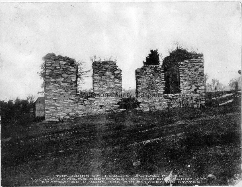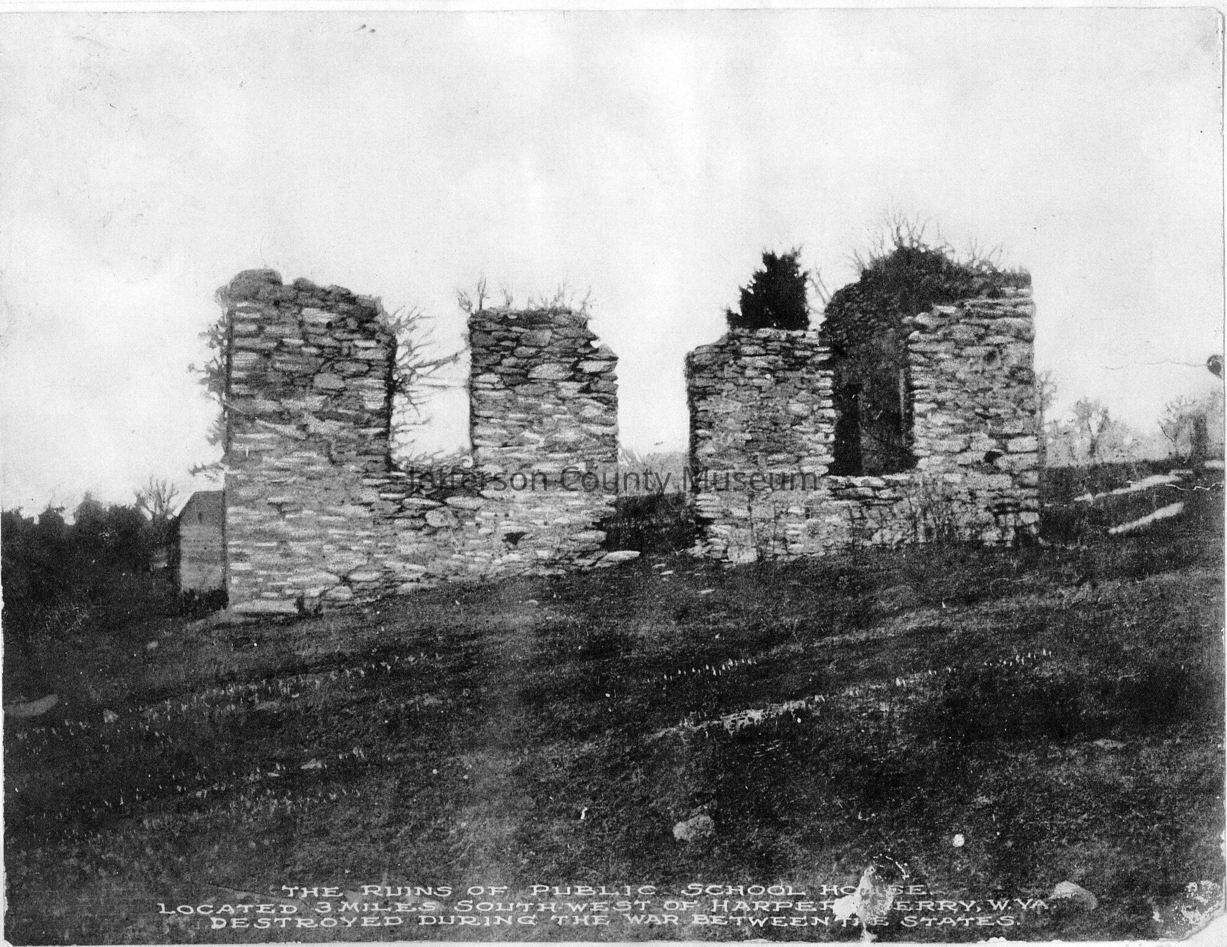 " The ruins of public school house, located 3 miles south-west of Harpers Ferry, W. Va. Destroyed during the War Between the States. "