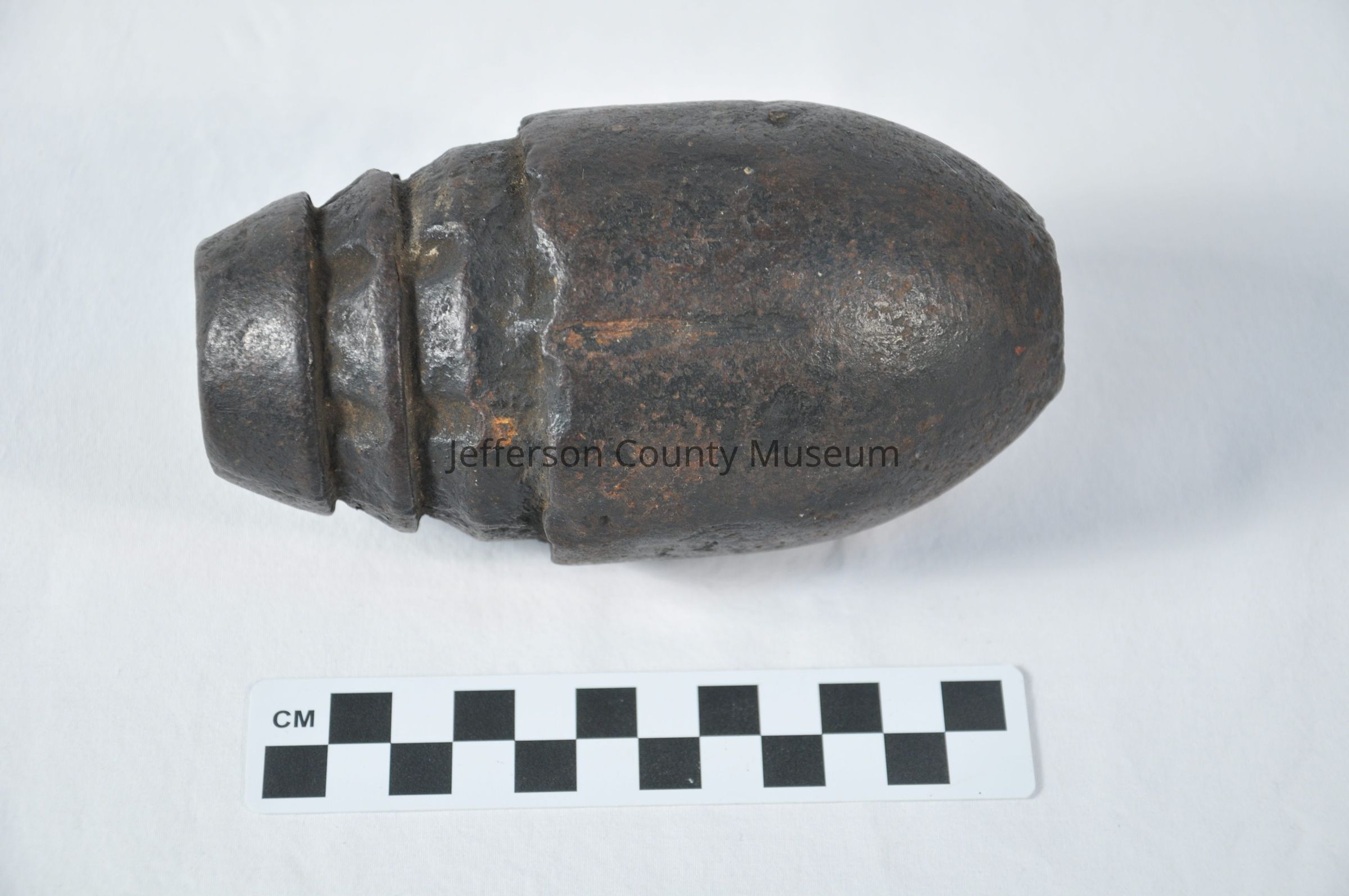 Confederate Archer artillery shell. Hole in end for fuse. Missing sabot. Two grooves on waist.Acquisition