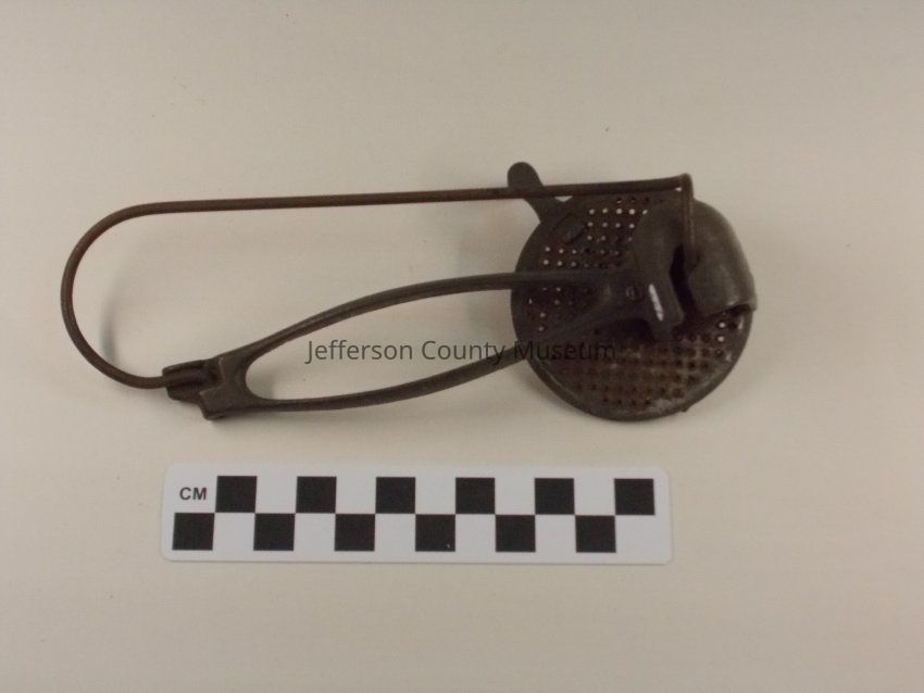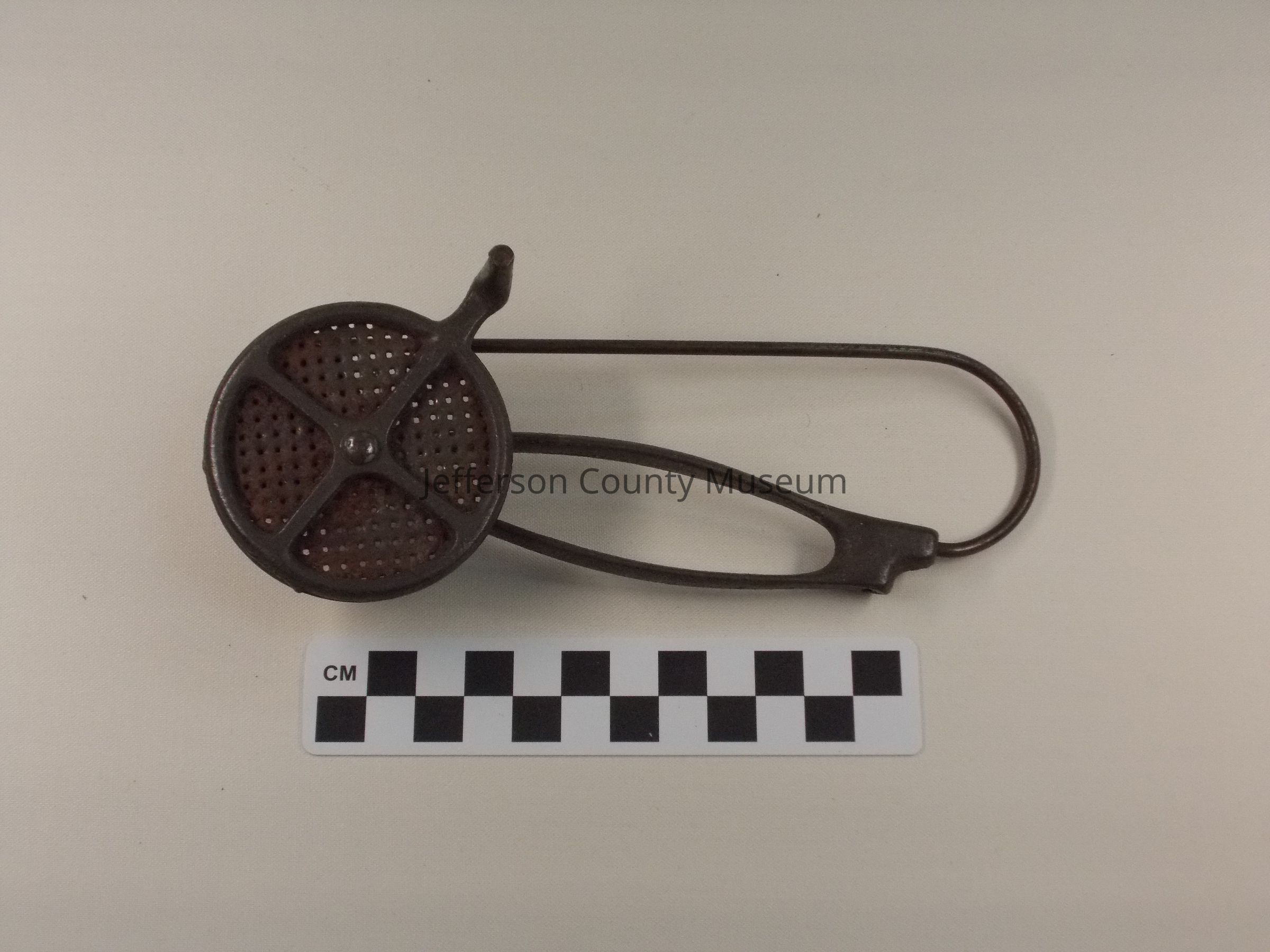 Metal crank-type nutmeg grater. Part of wire handle holds nutmeg against grater. Circa 1900-1910.Acquisition