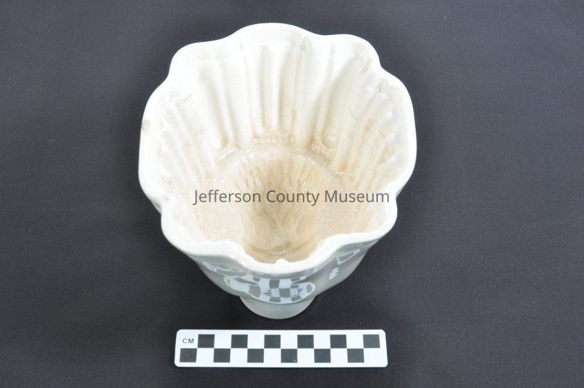Glazed earthenware mold with wheat sheaf design in bottom. Off-white color.Acquisition
