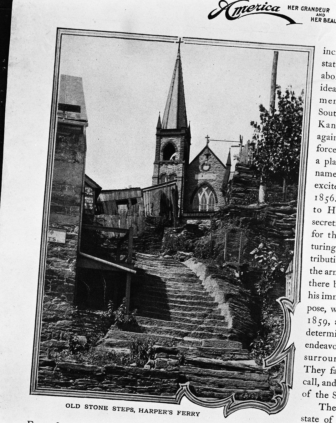 Old stone steps at Harpers Ferry from a book entitled "America, Her Grandeur and Beauty"