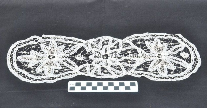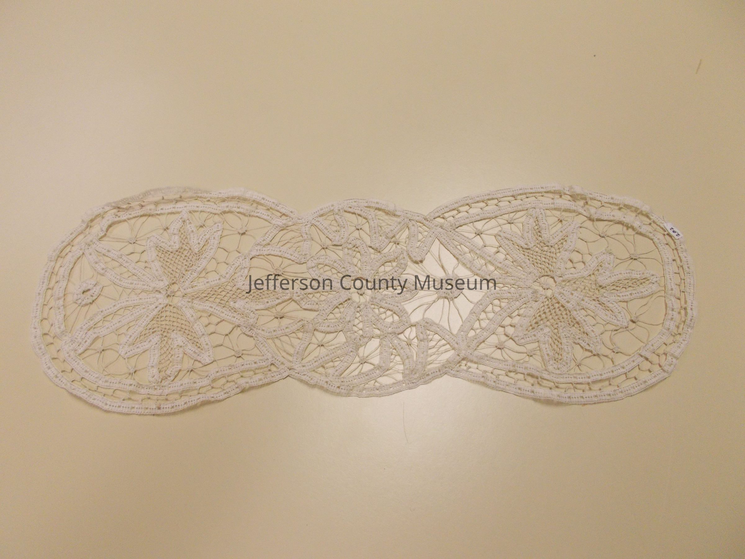 Lace doily with tatting. Mostly white thread but also incorporates cream colored thread.