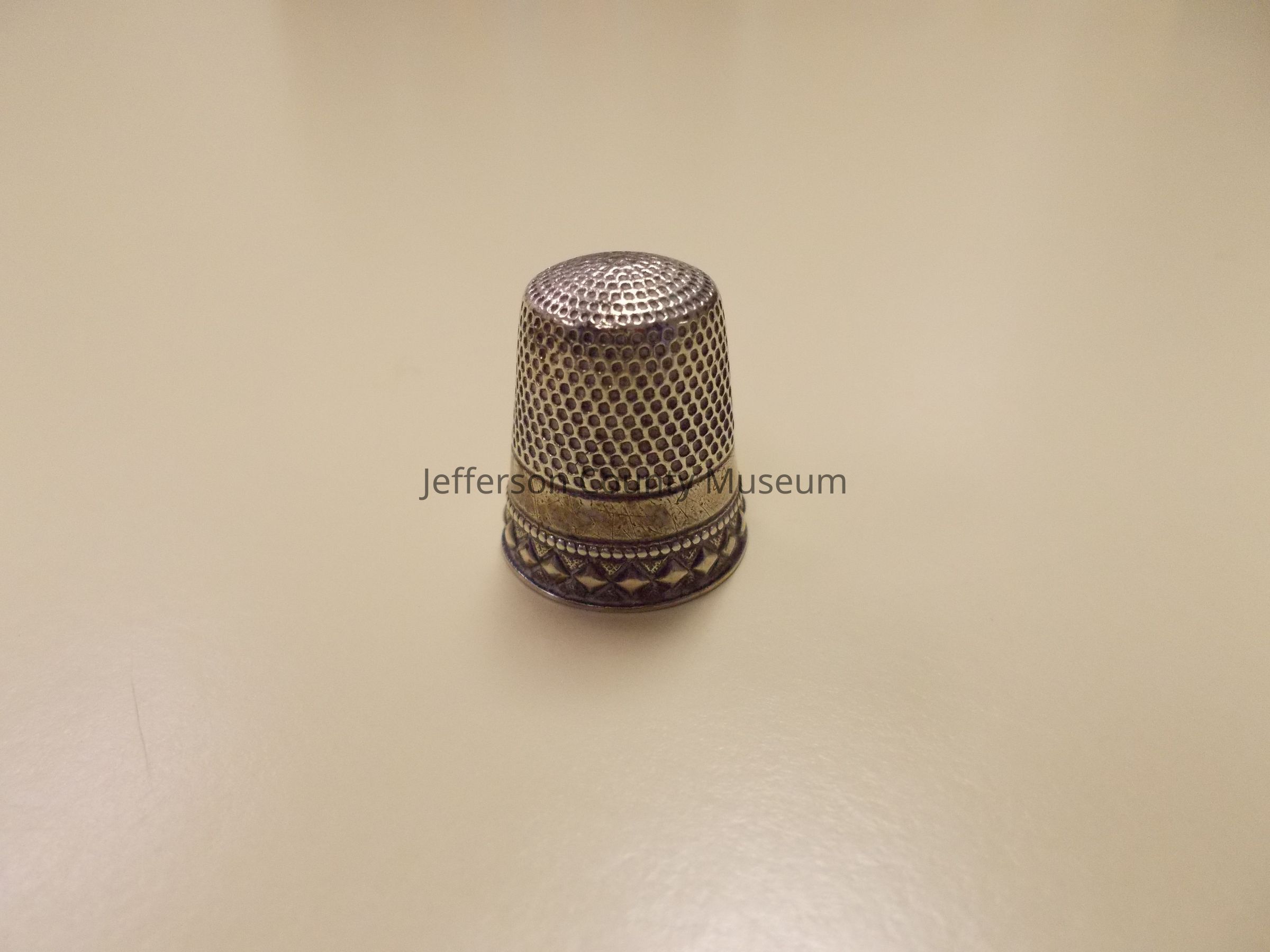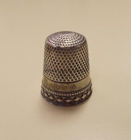 Sterling silver thimble with fancy scroll work on band. Stamped "STERLING".