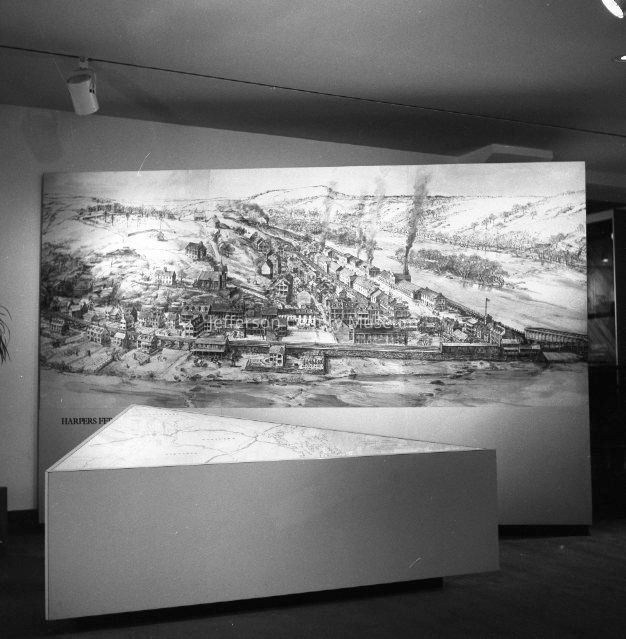 Mural of Harpers Ferry prior to John Brown's raid - hangs in John Brown Museum.