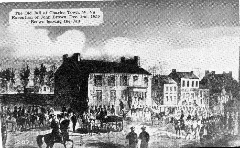 Postcard of a drawing of John Brown leaving jail for execution (December 2, 1859)