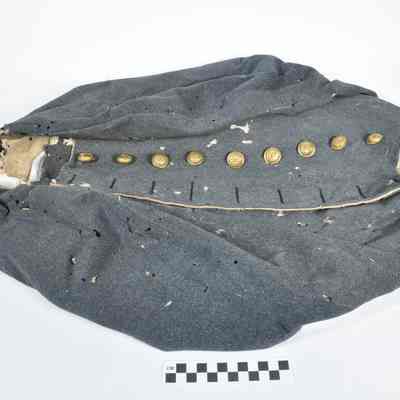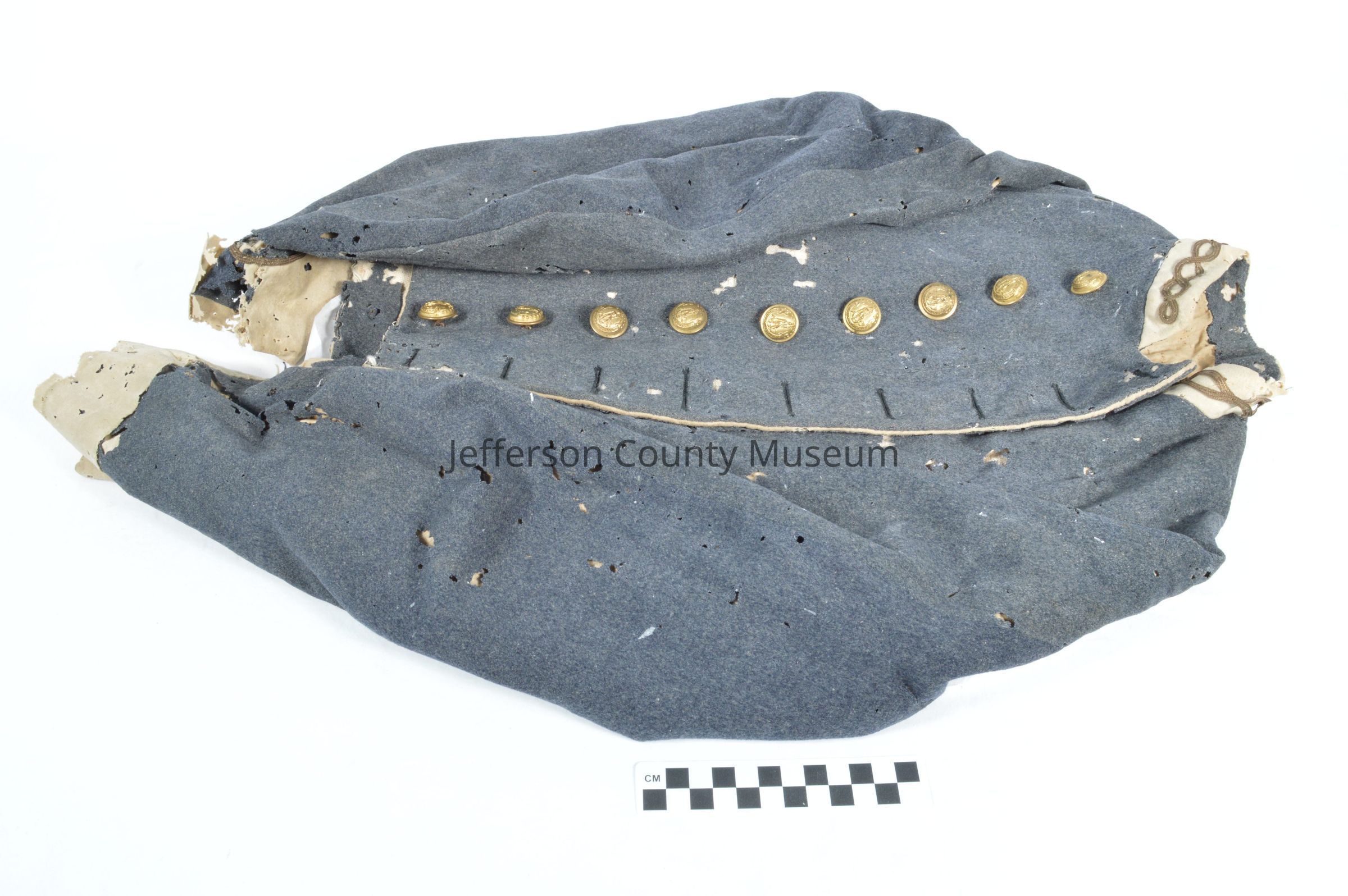 Confederate shell jacket marked "William Darke Briscoe CSA Second Virginia Infantry, Stonewall's Brigade" inside jacket on back in brown ink. Nine brass buttons with state seal of Virginia.Acquisition