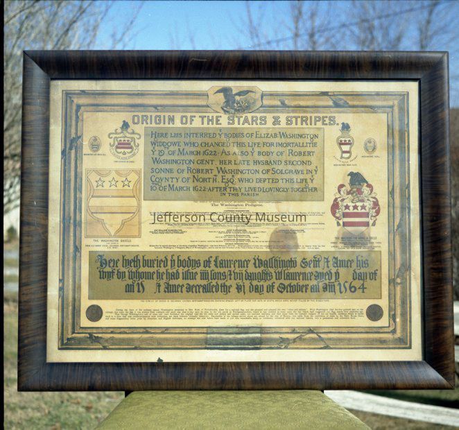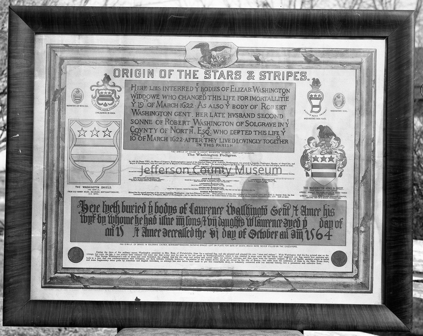 Origin of the stars and stripes. Copied from lithograph hanging at Belvedere, home of Mrs. Paul Wilson. [Black and white negative is on sheet film]
