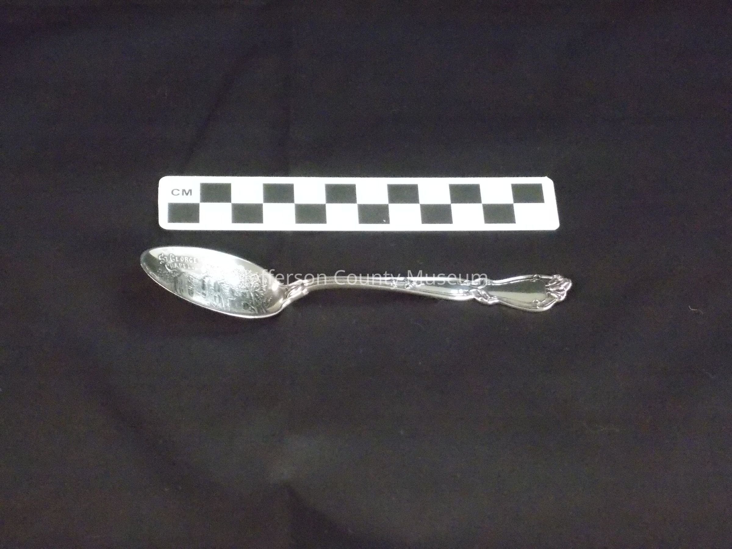 Silver commemorative spoon with engraving of St. George's Chapel. In bowl "ST. GEORGE CHAPEL, CHARLES TOWN, W. VA. 1748".Acquisition