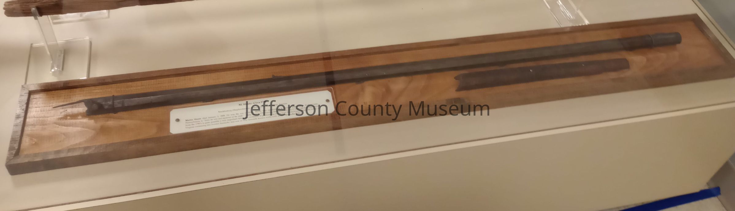 Barrel of a Sheetz (or Sheets) rifle and a piece of maple wood believed to be part of the original stock mounted on a wooden board with a label added by the donor. The metal barrel has a silver inlay portion which has the engraving "M Sheetz." The donor's research and consultation with expert Richard L. Adams confirmed that it was a barrel made by Martin SheetsAcquisition