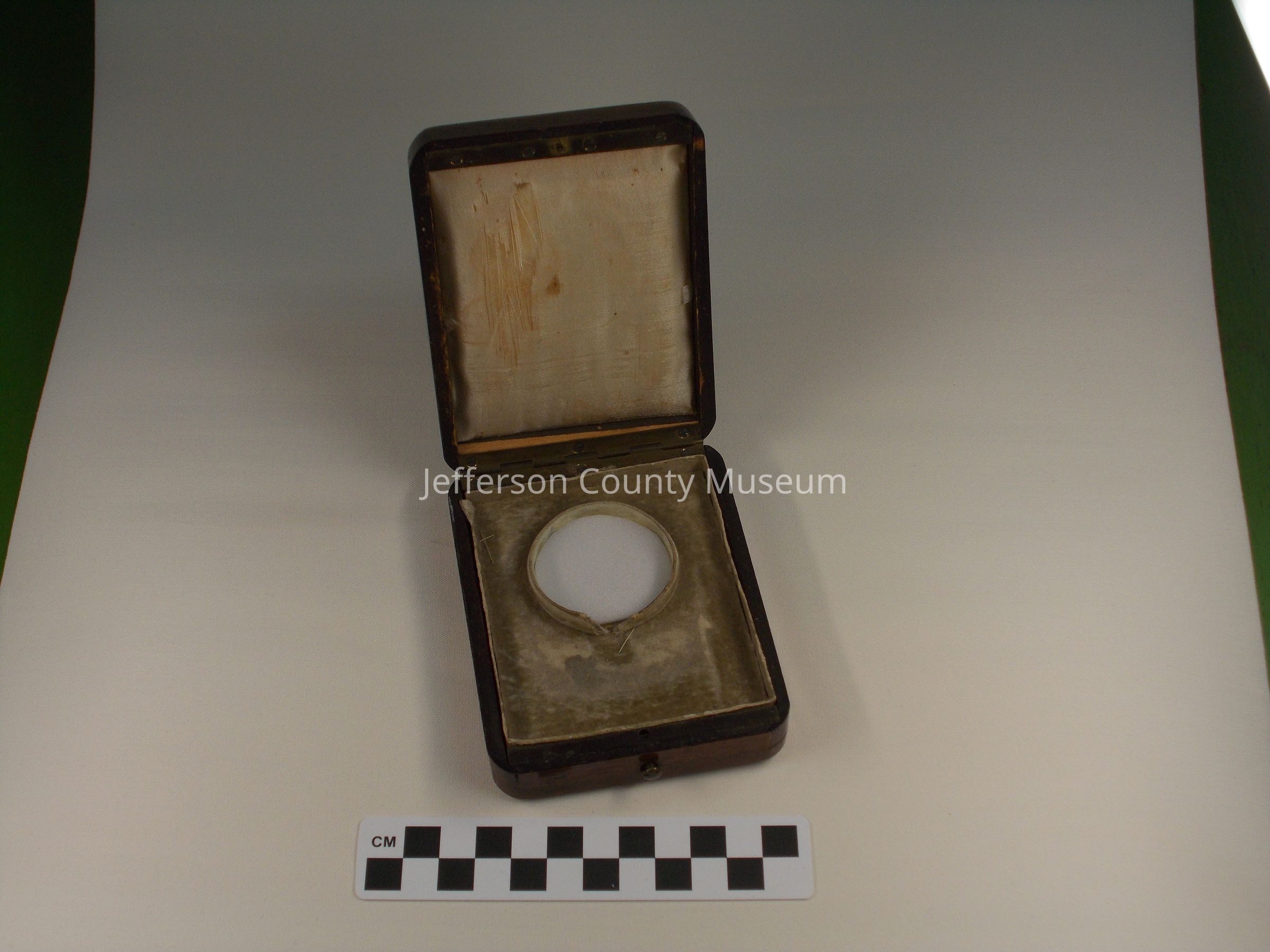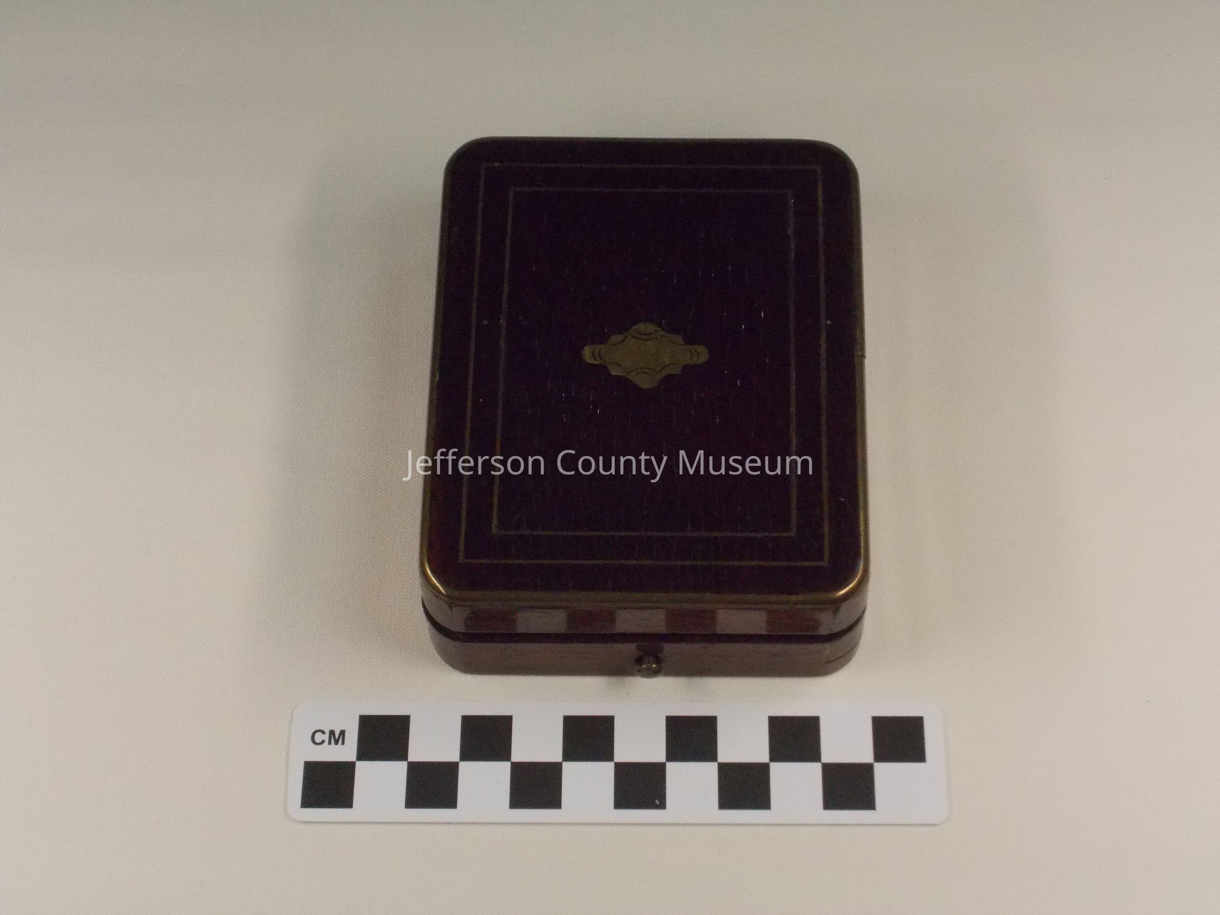 Wood, velvet and possibly silk pocket watch case for gold watch