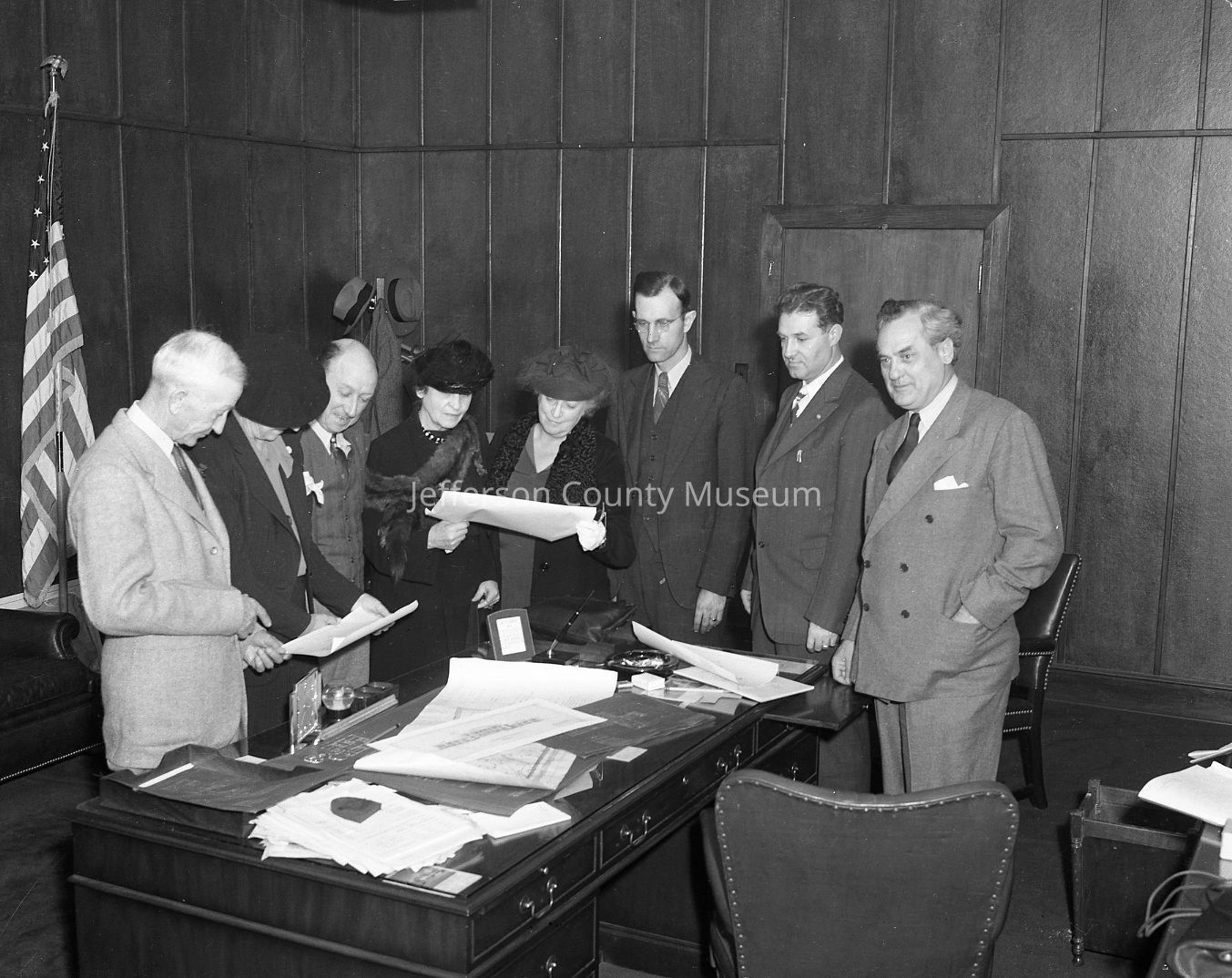 Hospital Board meeting discussing plans for new Charles Town General Hospital on site of old St. Hilda's school. Discussion in R. J. Funkhouser's's office. November 1944