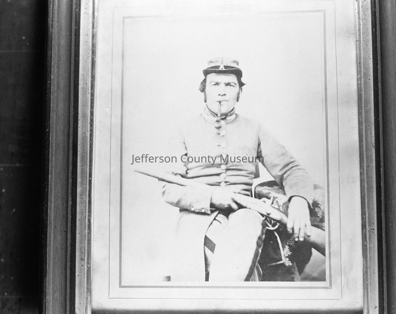 John F. Blessing in his Confederate uniform. From photo in Miss Ollie Blessings house of her grandfather.