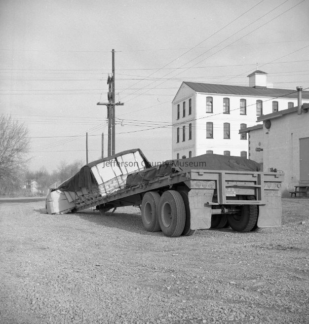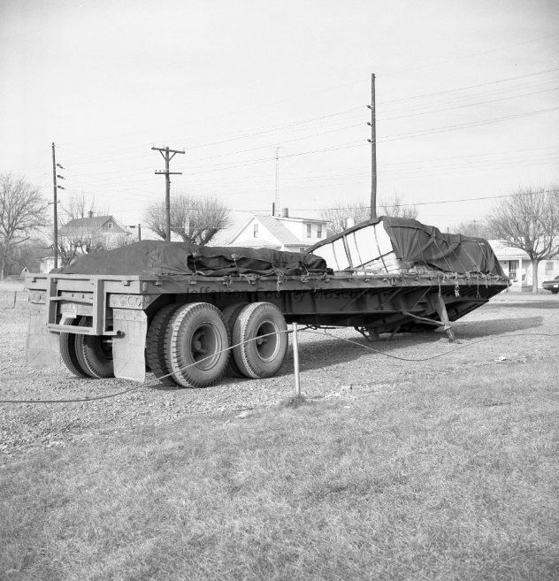 Truck trailer pods sunken into ground behind Dixie Narco engineering building