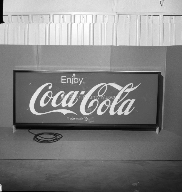 Dixie Narco counter-top unit and Coca Cola sign for Paul Burton [scanned 4 of 12 negatives]