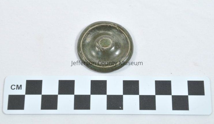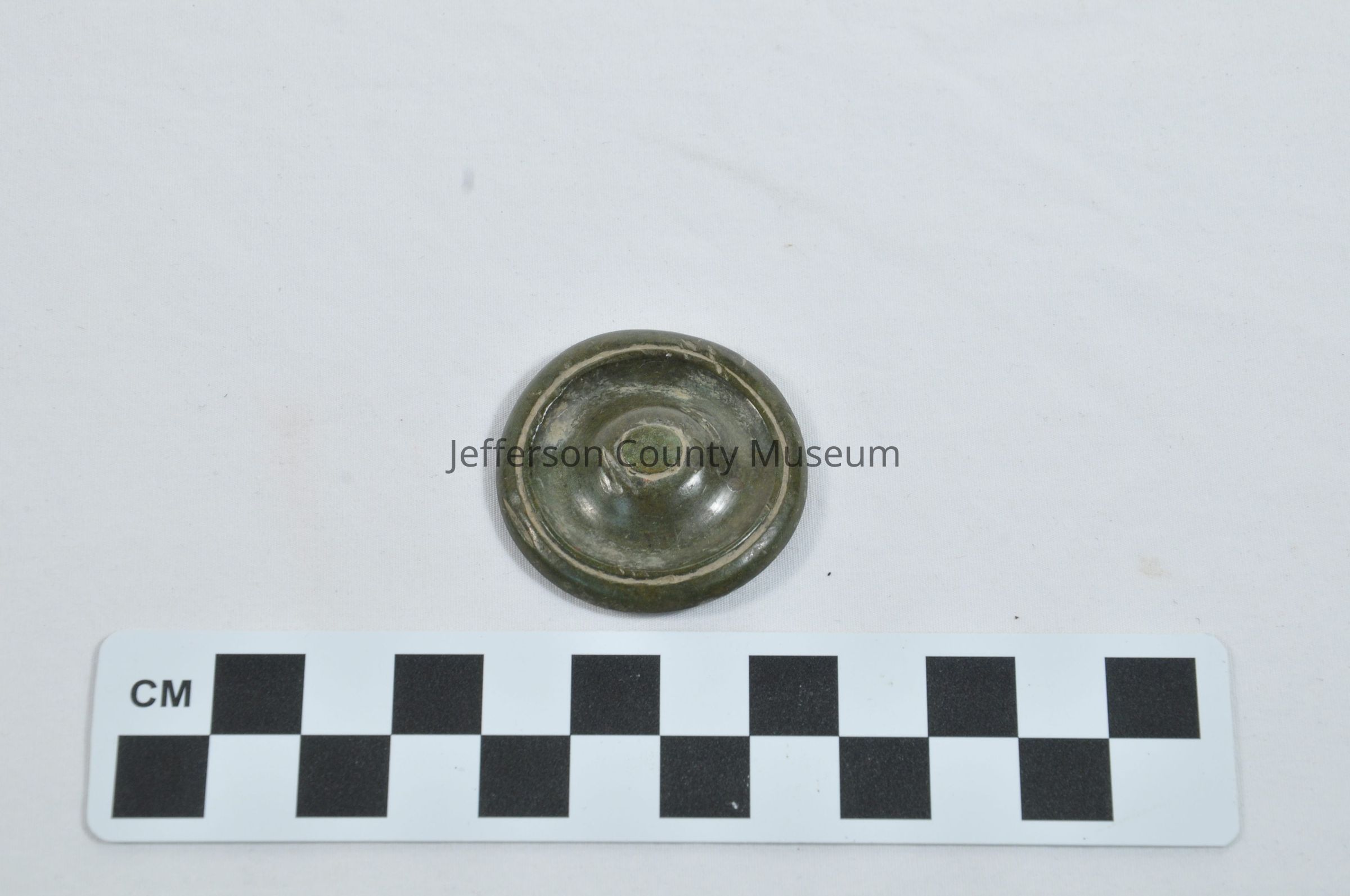 Brass bridle rosette. Simple, round design with small rivet in center.
