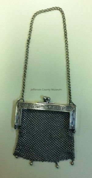 Ladies chain-link purse marked "GER. SILVER". Four metal beads at bottom. Carrying chain is light brass colored.Acquisition