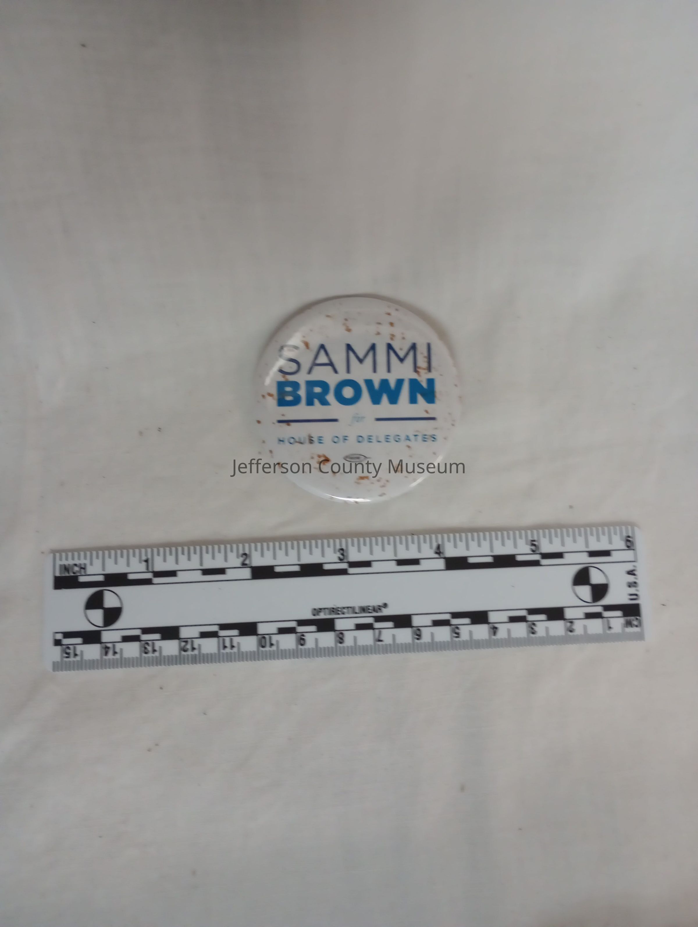 White round button with the blue text "SAMMI BROWN for HOUSE OF DELEGATES"Context