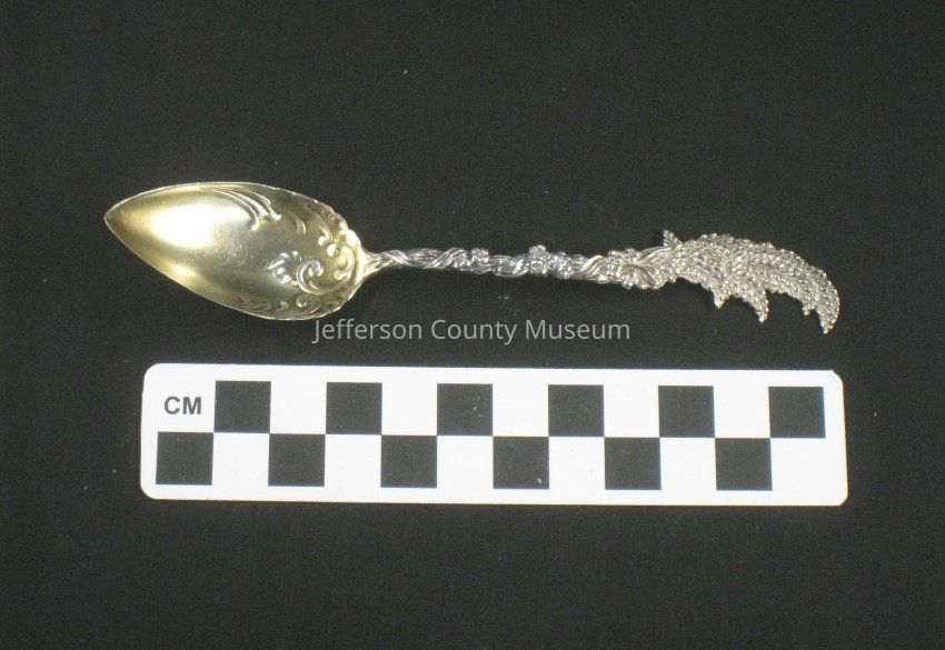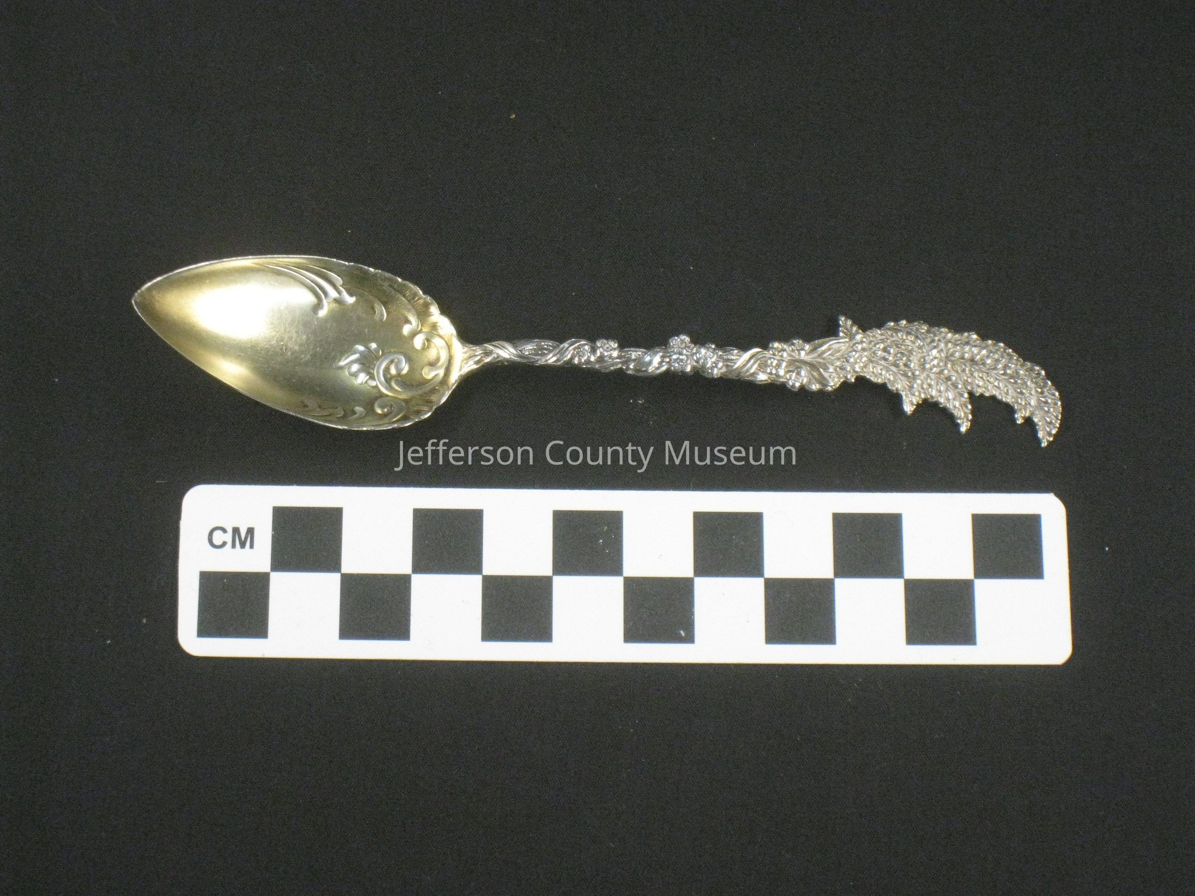 Silver gilt teaspoon with wheat or herb design at end of handle