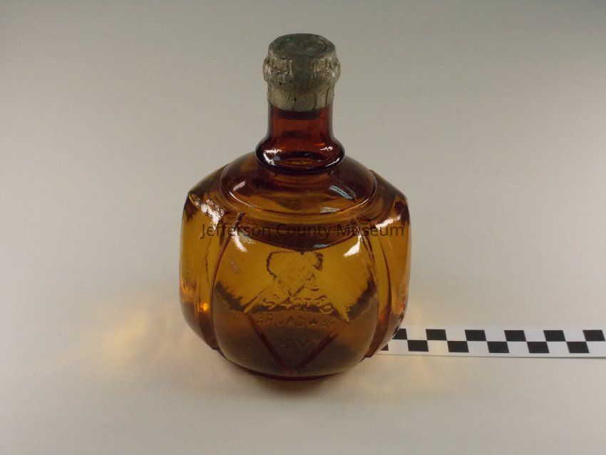 Round, amber, glass fire extinguisher filled with liquid. Marked "SFHA J. WARD, 407 BROADWAY, N.Y. PAT. 1871". Marked on back side " HAYWARD'S HAND FIRE GRENADE". Marked on side "PATENTED AUG 8, 1871". Large "2" on bottom. Carbon tetrachloride was commonly used in these devices.Acquisition